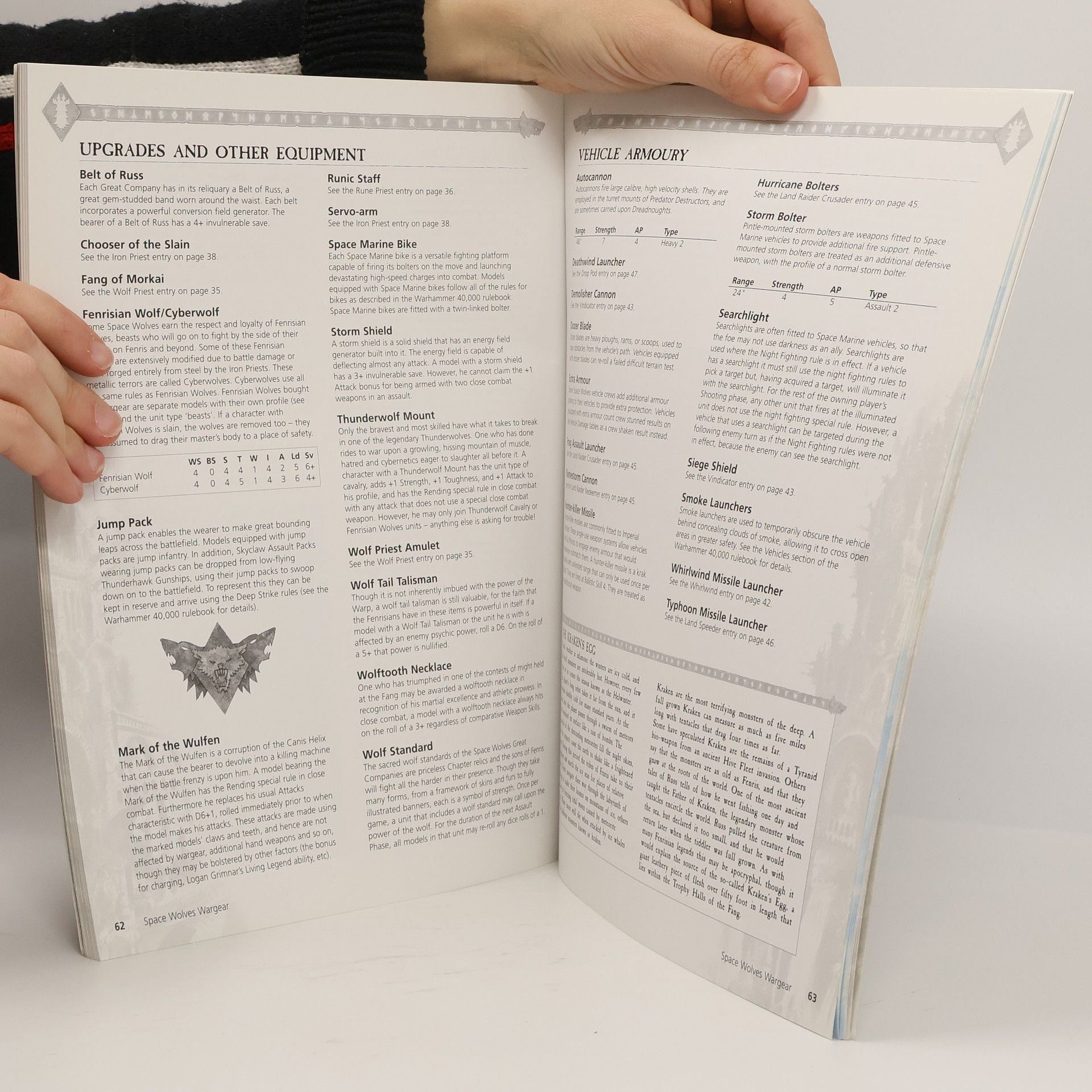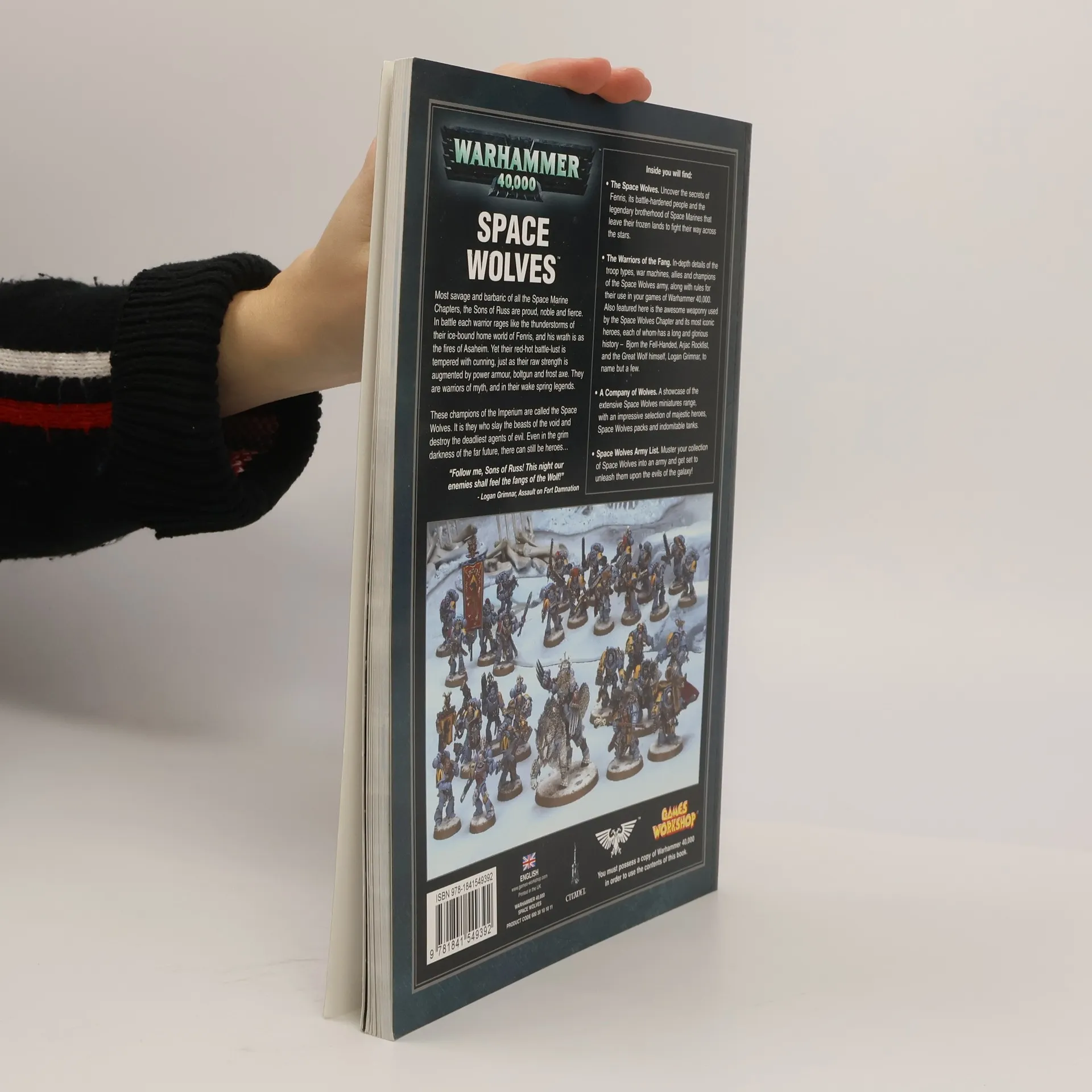 Most savage and barbaric of all the Space Marine Chapters, the Sons of Russ are proud, noble and fierce. In battle each warrior rages like the thunderstorms of their ice-bound home world of Fenris, and his wrath is as the fires of Asaheim. Yet their red-hot battle-lust is tempered with cunning, just as their raw strength is augmented by power armour, boltgun and frost axe. They are warriors of myth, and in their wake spring legends.