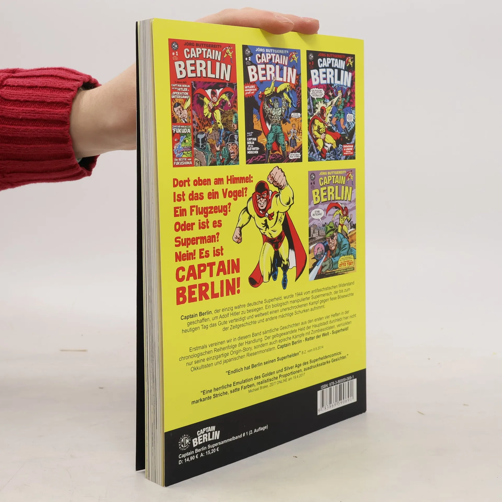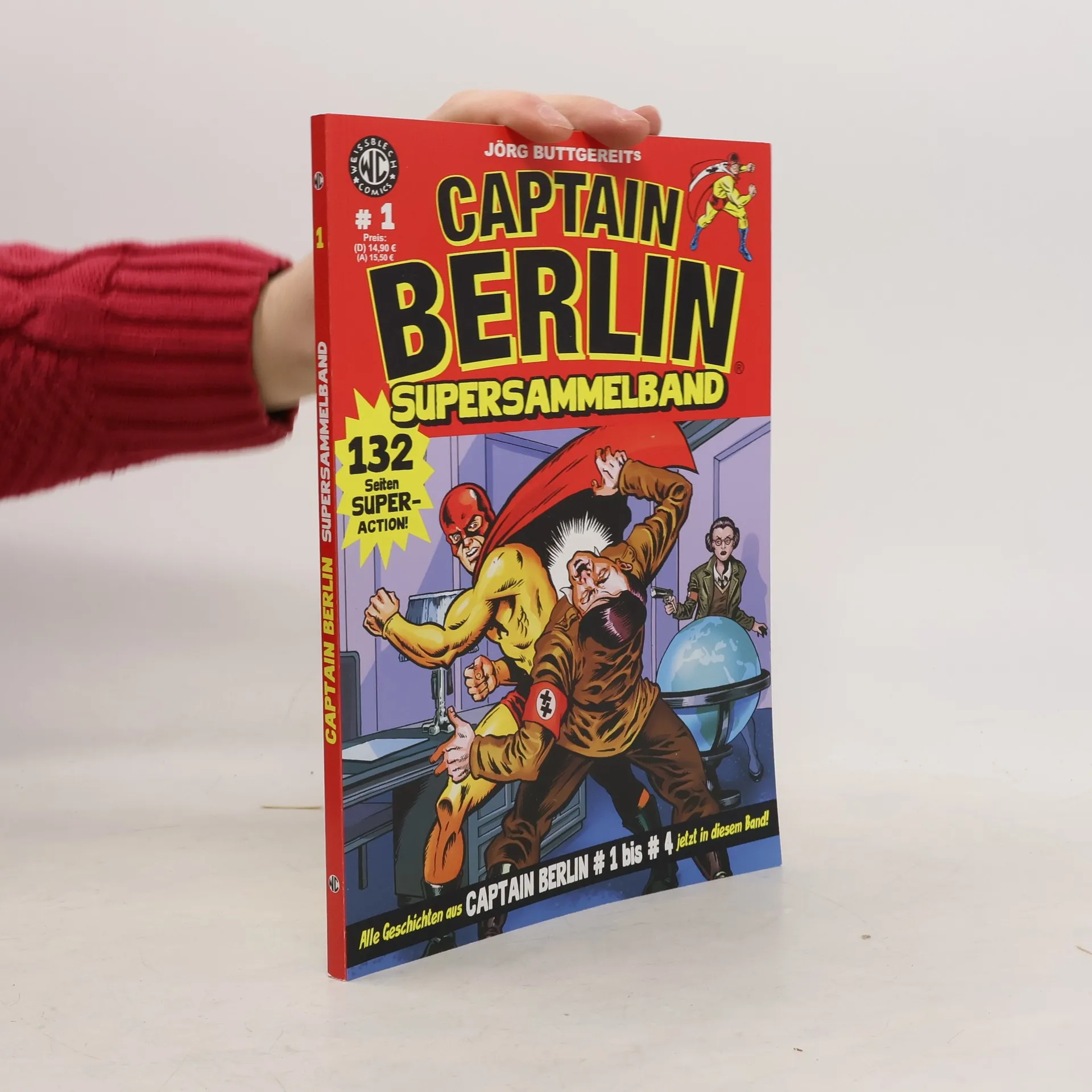 Captain Berlin, der einzig wahre deutsche Superheld, wurde 1944 vom antifaschistischen Widerstand geschaffen, um Adolf Hitler zu besiegen. Ein biologisch manipulierter Supermensch, der bis zum heutigen Tag das Gute verteidigt und weltweit einen unerschrockenen Kampf gegen fiese Bösewichte der Zeitgeschichte und andere mächtige Schurken aufnimmt. Erstmals werden in diesem Band sämtliche Geschichten aus den Heften CAPTAIN BERLIN # 1 bis # 4 in der chronologischen Reihenfolge der Handlung vereint. Der gelbgewandete Held der Hauptstadt durchlebt hier nicht nur seine einzigartige Origin-Story, sondern auch epische Kämpfe mit Zombiesoldaten, verrückten Okkultisten und japanischen Riesenmonstern. Captain Berlin - Retter der Welt - Superheld! Ein 132-Seiten Brocken mit Bonusmaterial aus der WEISSBLECH-Werkstatt, ideal für Neueinsteiger, Sammler und Originalheftschoner!
