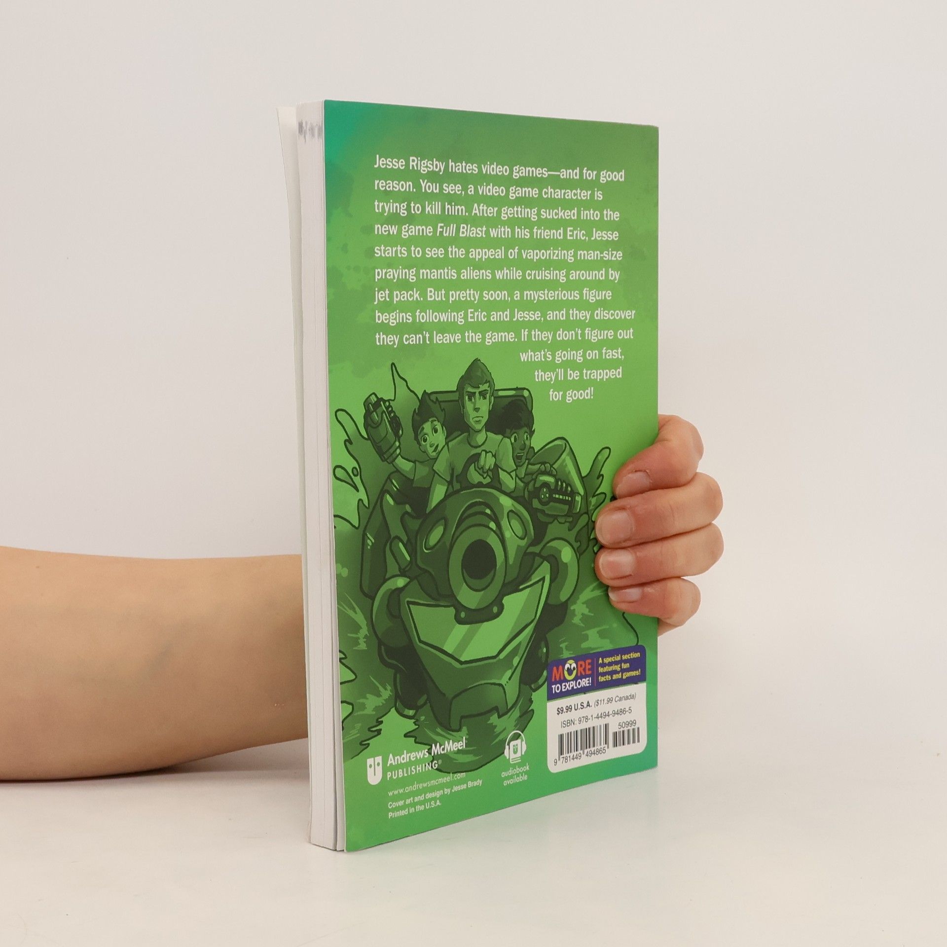 Kids who love video games will love this first installment of the new 5-book series about 12-year old Jesse Rigsby and the wild adventures he encounters getting sucked into different video games. Jesse Rigsby hates video games—and for good reason. You see, a video game character is trying to kill him. After getting sucked in the new game <i>Full Blast </i>with his friend Eric, Jesse starts to see the appeal of vaporizing man-size praying mantis while cruising around by jet pack. But pretty soon, a mysterious figure begins following Eric and Jesse, and they discover they can't leave the game. If they don't figure out what's going on fast, they'll be trapped for good!