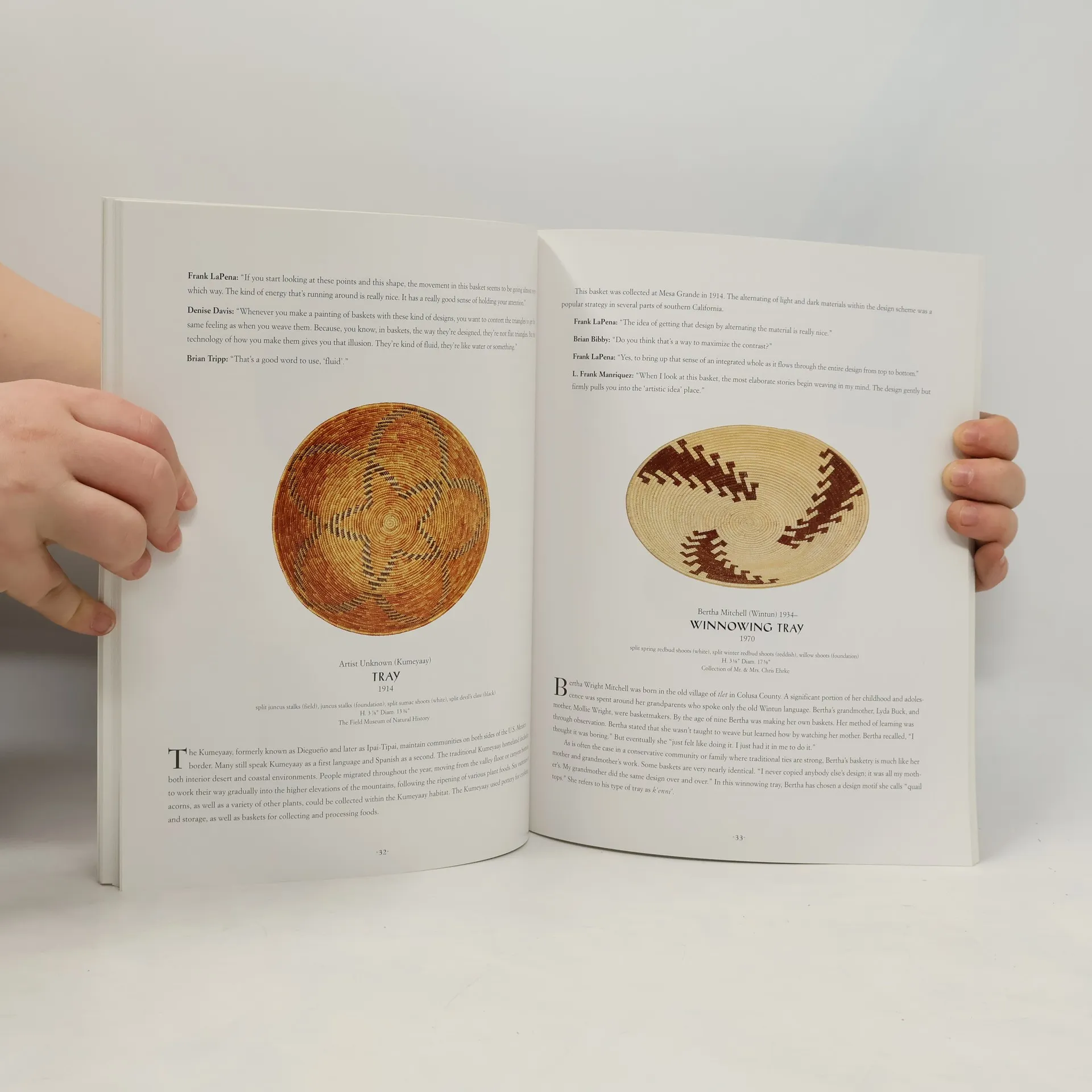 Features over sixty examples of California Indian basketry, including burden baskets, seed beaters, and cradles.