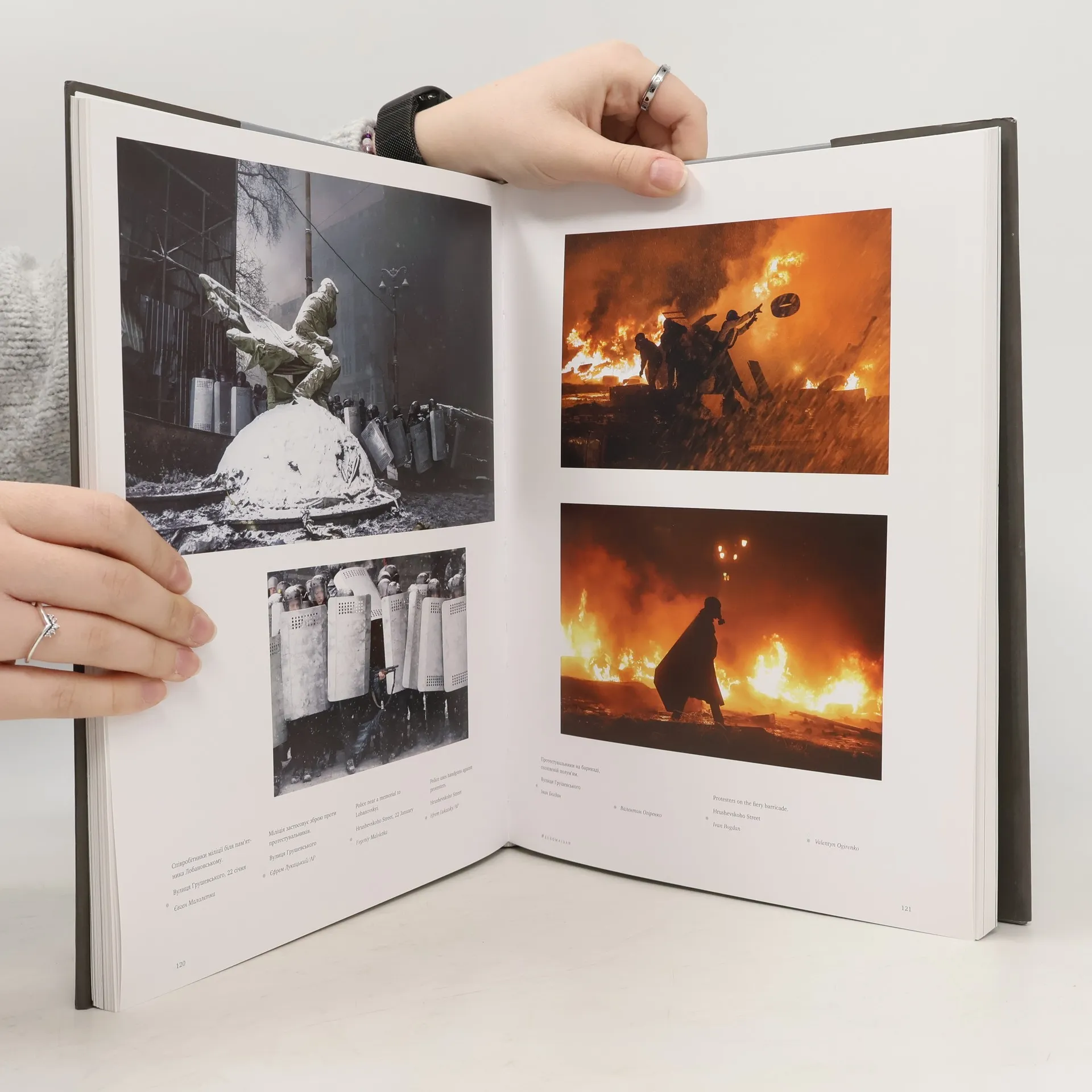 This work is dedicated to Ukraine’s 2013-2014 Revolution of Dignity and Democracy, which began in Kyiv’s Maidan Nezalezhnosti (Independence Square), a historic site for democratic mobilization. The Revolution transformed Maidan from a gathering place into a powerful movement demanding political accountability. Mass protests led to the ousting of the corrupt President and the rise of opposition leaders. Through vivid photographs and insightful text, this book documents Euromaidan as a significant historical event, embodying shared values and creative expression. It features compelling images captured by Ukrainian photographers from November 2013 to February 2014. The book opens with two articles: historian Yaroslav Hrytsak discusses the Revolution's sources and causes, while philosopher Taras Liutyi examines the Maidan's myths. Additional resources include a chronology of events, a map of the Maidan, and a list of those who lost their lives during the protests. This evocative hardback album draws from the archives of over 600 photographers, both professional and amateur, showcasing their powerful contributions to the visual narrative of this pivotal moment in Ukraine's history.