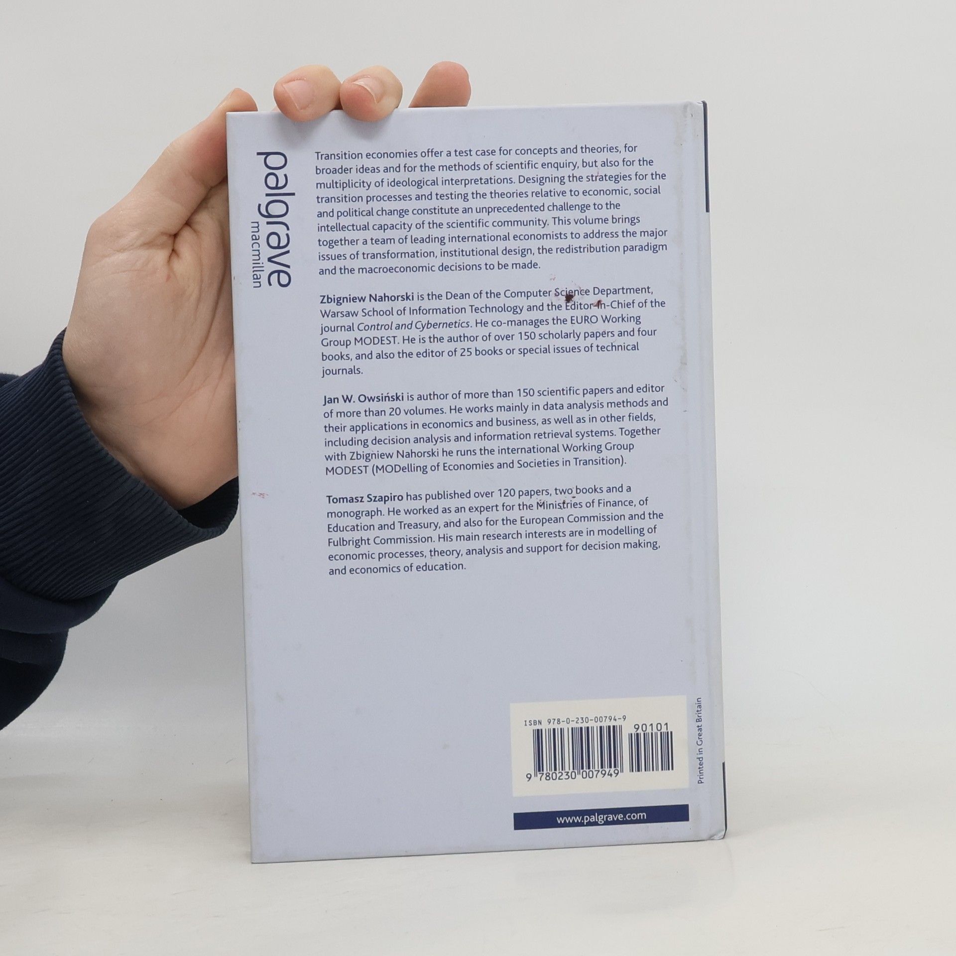 Transition economies offer a test case for concepts and theories, for broader ideas and for the methods of scientific enquiry, but also for the multiplicity of ideological interpretations. This volume addresses the major issues of transformation, institutional design, the redistribution paradigm and the macroeconomic decisions to be made.