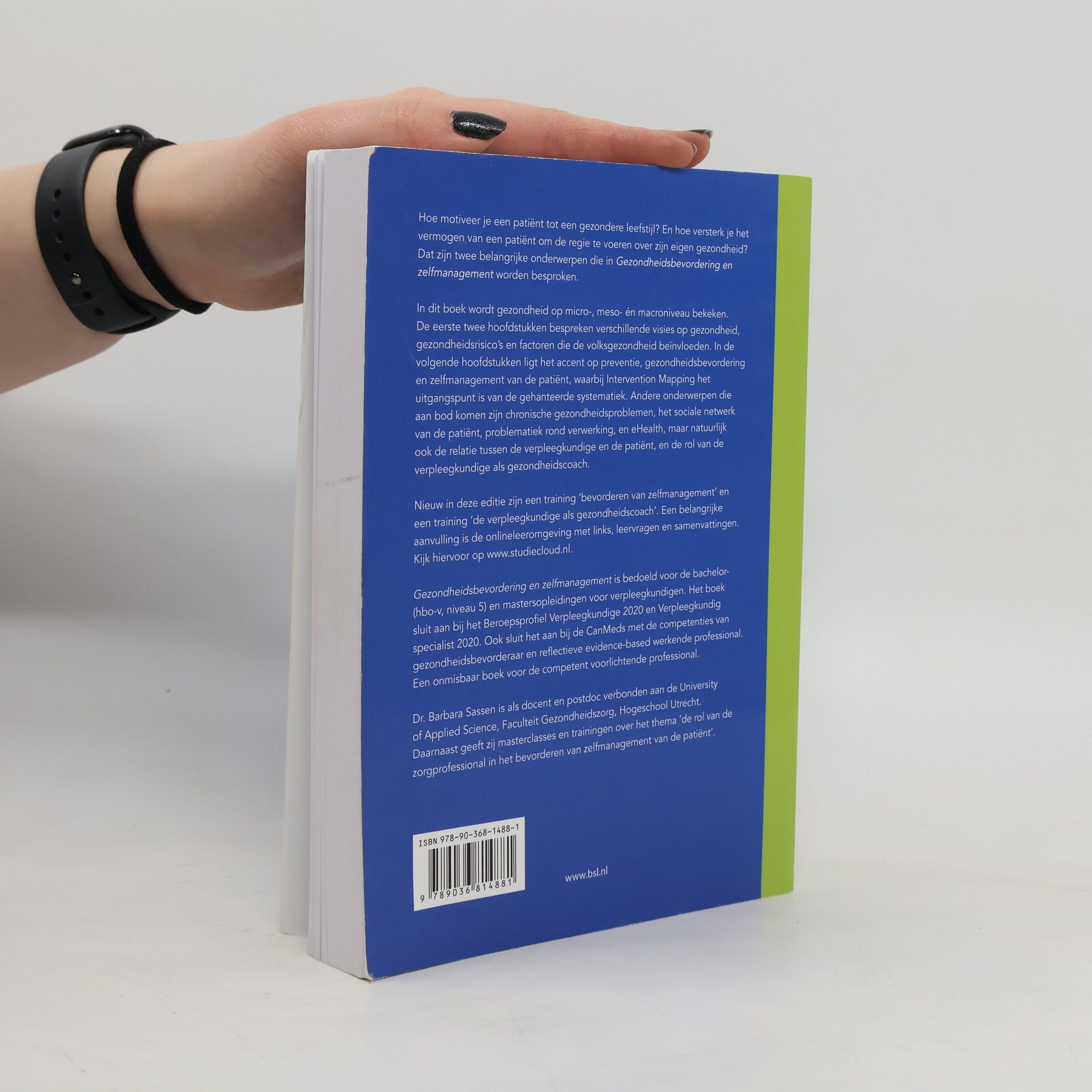 Hoe motiveer je een patiënt tot een gezondere leefstijl en versterk je zijn vermogen om de regie over zijn gezondheid te voeren? Dit boek behandelt deze belangrijke onderwerpen door gezondheid op micro-, meso- en macroniveau te analyseren. De eerste hoofdstukken verkennen verschillende visies op gezondheid, gezondheidsrisico’s en factoren die de volksgezondheid beïnvloeden. De focus verschuift naar preventie, gezondheidsbevordering en zelfmanagement, met Intervention Mapping als uitgangspunt. Andere thema’s zijn chronische gezondheidsproblemen, het sociale netwerk van de patiënt, verwerking, eHealth, en de relatie tussen verpleegkundige en patiënt, evenals de rol van de verpleegkundige als gezondheidscoach. Nieuw in deze editie zijn trainingen voor het bevorderen van zelfmanagement en de verpleegkundige als gezondheidscoach. Een waardevolle aanvulling is de online leeromgeving met links, leervragen en samenvattingen. Dit boek is bedoeld voor bachelor- en masteropleidingen voor verpleegkundigen en sluit aan bij relevante beroepsprofielen en competenties. Dr. Barbara Sassen, docent en postdoc aan de University of Applied Science, biedt daarnaast masterclasses en trainingen over de rol van zorgprofessionals in het bevorderen van zelfmanagement.