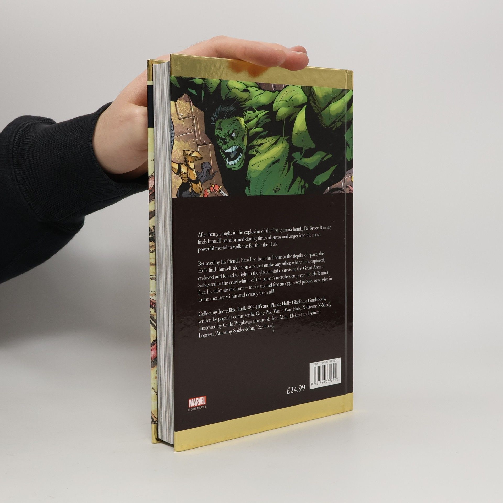Banished to another planet by those he called his friends, the Hulk faces his most dangerous challenge to date. Captured, enslaved and forced to fight in the gladiatorial contests of the Great Arena at the whim of the planet's merciless ruler, the Red King, the Hulk faces his ultimate challenge - to rise and free an oppressed people or to give in to the monster within and destroy all! Collecting Incredible Hulk #92-105 and Planet Hulk: Gladiator Guidebook.
