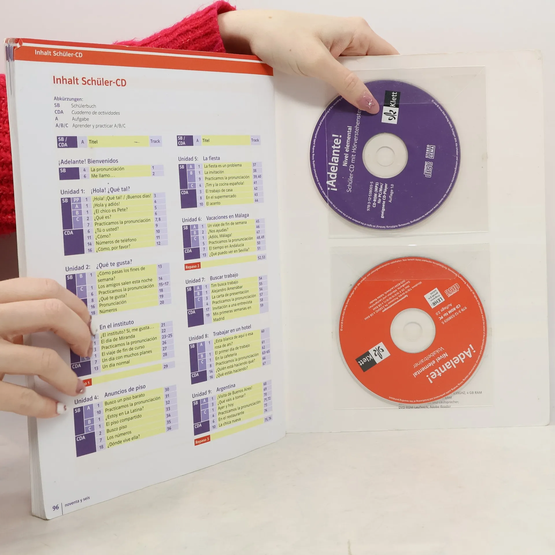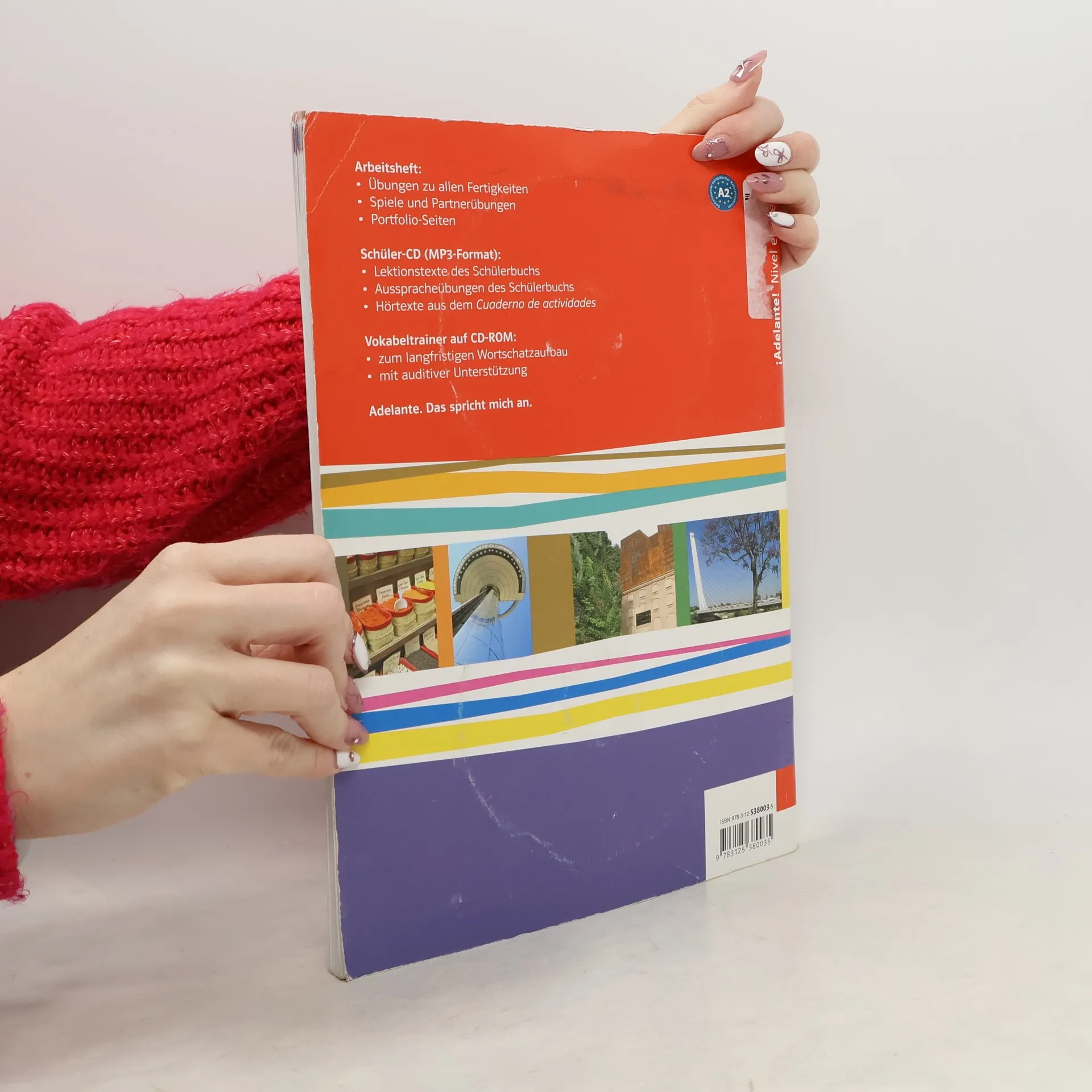 Das Cuaderno ist vorwiegend für die häusliche Arbeit konzipiert. Es ergänzt und erweitert das Übungsangebot des Schülerbuchs, vorwiegend im schriftlichen Bereich. Das Arbeitsheft- stärkt die kommunikative Kompetenz durch Ausweisung der Fertigkeiten- schult die methodische Kompetenz durch Einsatz von Lernstrategien- vermittelt interkulturelle Kompetenz durch Zusatzinformationen- gibt zusätzliche Tipps zur Grammatik- hat Tandembögen im AnhangAuf den beiliegenden CDs:- ausgewählte Texte aus der Lektion und Hörtexte aus dem Cuaderno im mp3-Format- die Lernsoftware mit zahlreichen, ansprechenden Grammatik- und Wortschatzübungen mit drag and drop-Elementen, multiple-choice-Aufgaben, Schreibübungen, Hörverstehensübungen, Suchbilder, Bingo, Domino, Kreuzworträtsel und vieles mehr zum Zuhause üben. Gegenüberstellung der Tracknummern der Lehrer-Audio-CDs und Schüler-Audio-CDs von ¡Adelante! Nivel elementalZur Übersicht"