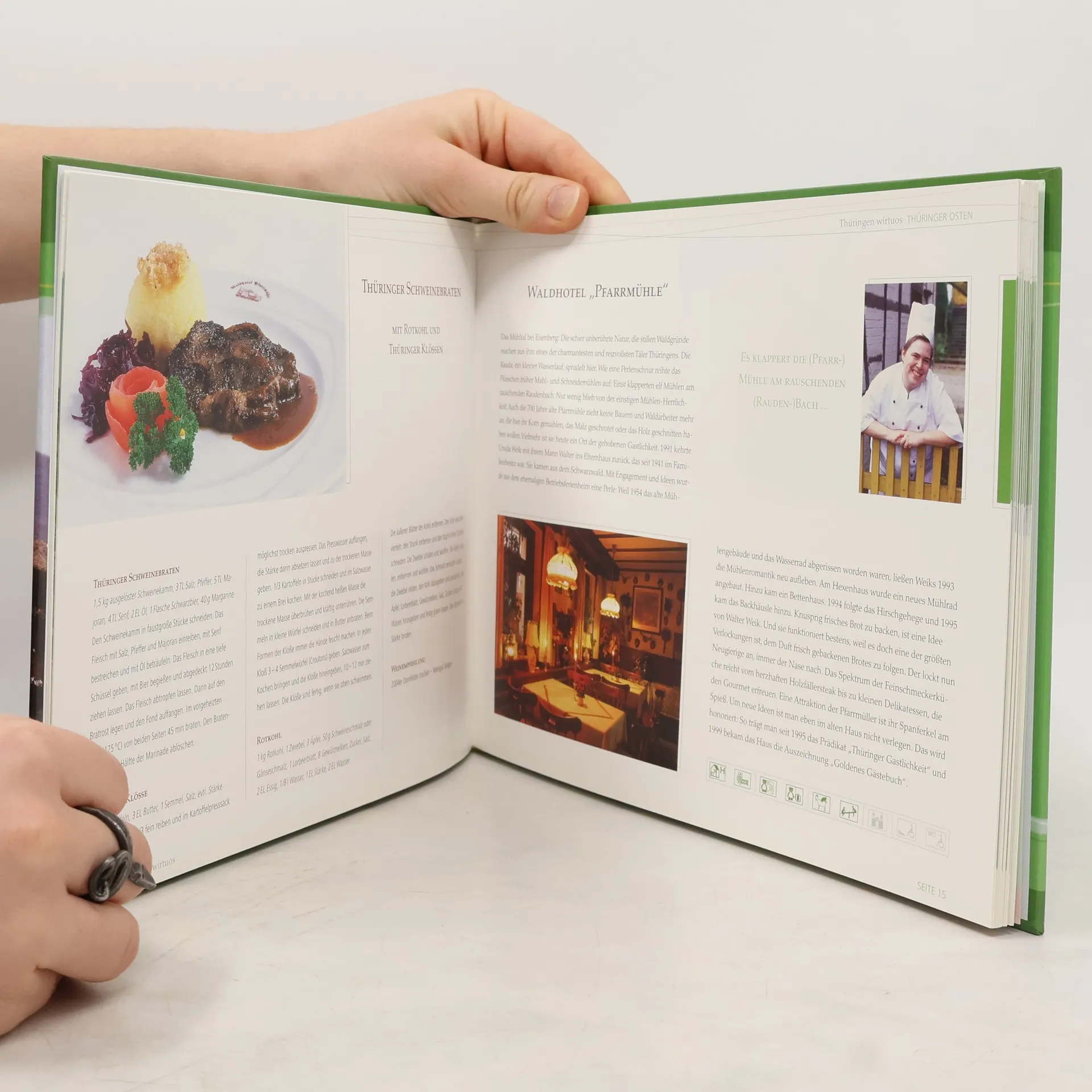 Liebe, das weiß jeder, geht durch den Magen – auch die Liebe zu einer Landschaft. Thüringen, mit seiner wunderbaren Natur, ist eine Schönheit unter den deutschen Ländern, die edle Herkunft und Herzensbildung vereint. Es zeigt sich als graziös und bäuerlich derb, herzlich und herzhaft. Thüringens Wesen ist geprägt von Gastlichkeit, die durch geschichtsträchtige Orte in malerischer Natur und eine unwiderstehliche Küche verzaubert. Die Kochkunst wird hier von ihren Meistern virtuos ausgeübt und verdient den Titel „wirtuos“. Das neue Buch aus dem E. Reinhold Verlag präsentiert dieses „wirtuose“ Thüringen sowohl für Entdecker als auch für Einheimische. Es fungiert als Reiseführer und Kochbuch, mit zahlreichen farbigen Abbildungen und unterhaltsamen, informativen Texten, die die Thüringer Landschaft, Geschichte, Lebensart, Feste, Bräuche und traditionelle Spezialitäten lebendig werden lassen. Der Leser wird zu 24 Wirtshäusern in ruhigen Gegenden geführt und erhält wertvolle Tipps für seinen Thüringenurlaub oder Wochenendausflug. Jedes Gasthaus wird anschaulich beschrieben, und der jeweilige Koch teilt eine kulinarische Spezialität mit Rezept. Die junge Thüringer Küche verbindet alte Traditionen mit neuen Impulsen der internationalen Kochkunst. Während der Lektüre wird der Leser träumen und ahnen, dass mehr Zutaten zu den Rezepten gehören als nur Lebensmittel und Gewürze – vor allem das Geheimnis, mit Liebe zu kochen.