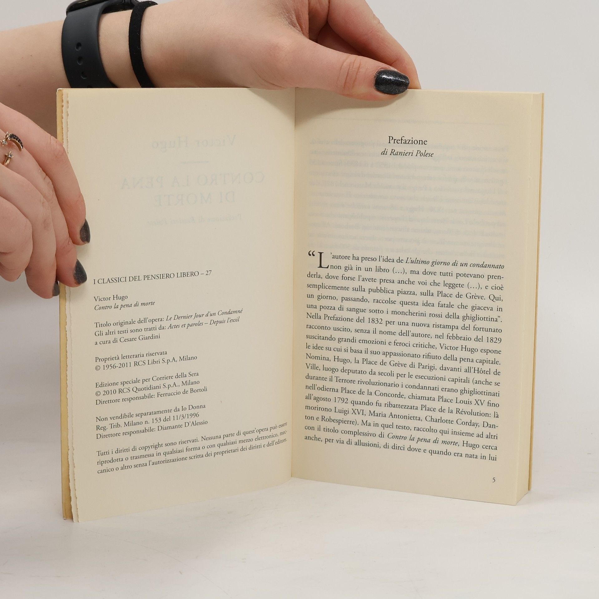 Il patibolo è un delitto permanente; è il più insolente degli oltraggi alla dignità umana, alla civiltà, al progresso, e tutte le volte che il patibolo viene alzato, noi riceviamo uno schiaffo. Questo delitto è commesso in nostro nome": tenace oppositore della pena di morte, Victor Hugo si batté per tutta la vita contro di essa, e a questa battaglia dedicò alcune delle parole più potenti che siano mai state scritte sulla giustizia, la pietà e il rispetto dell'uomo. E mentre la pena di morte continua a essere tragicamente diffusa anche nel mondo di oggi, gli scritti di Hugo costituiscono un monito di assoluta attualità che interroga le nostre coscienze, esortando tutti noi a difendere l'inviolabilità della vita umana.