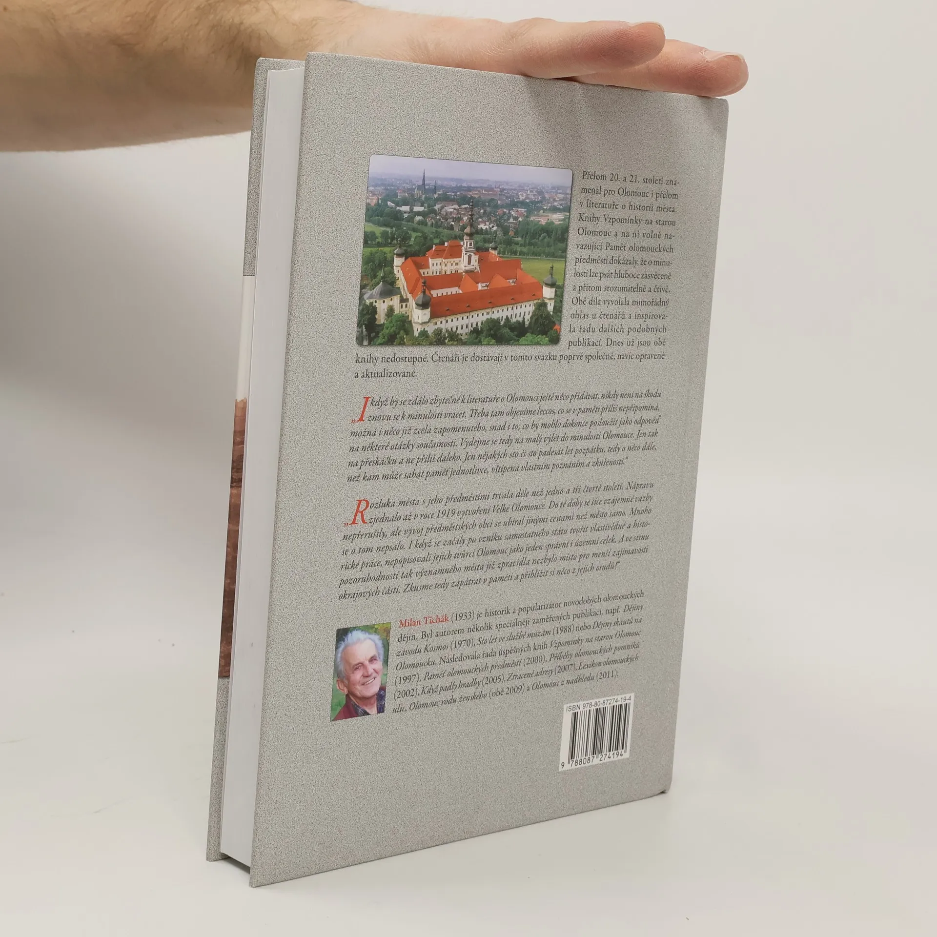 Přelom 20. a 21. století znamenal pro Olomouc i přelom v literatuře o historii města. Knihy Vzpomínky na starou Olomouc a na ni volně navazující Paměť olomouckých předměstí dokázaly, že o minulosti lze psát hluboce zasvěceně a přitom srozumitelně a čtivě. Obě díla vyvolala mimořádný ohlas u čtenářů i odborníků a inspirovala řadu dalších podobných publikací. Dnes už jsou obě knihy nedostupné. Čtenáři je dostávají v tomto svazku poprvé společně, navíc opravené a aktualizované. Milan Tichák (1933) je historik a popularizátor novodobých olomouckých dějin, autor řady úspěšných knih Vzpomínky na starou Olomouc (1997), Paměť olomouckých předměstí (2000), Příběhy olomouckých pomníků (2002), Když padly hradby (2005), Ztracené adresy (2007), Lexikon olomouckých ulic, Olomouc rodu ženského (obě 2009) a Olomouc z nadhledu (2011).