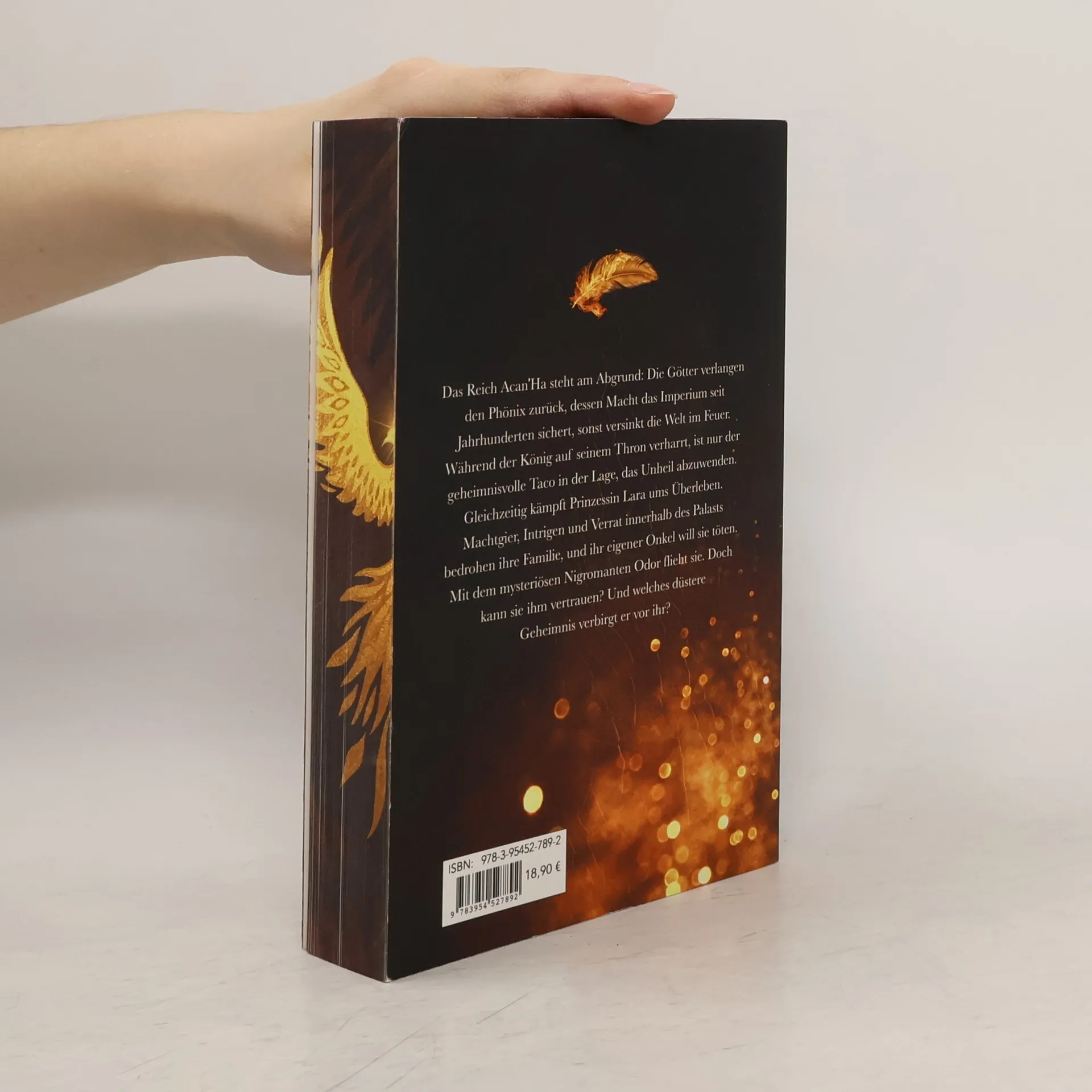 Das Reich Acan'Ha steht am Abgrund: Die Götter verlangen den Phönix zurück, dessen Macht das Imperium seit Jahrhunderten sichert, sonst versinkt die Welt im Feuer. Während der König auf seinem Thron verharrt, ist nur der geheimnisvolle Taco in der Lage, das Unheil abzuwenden. Gleichzeitig kämpft Prinzessin Lara ums Überleben. Machtgier, Intrigen und Verrat innerhalb des Palasts bedrohen ihre Familie, und ihr eigener Onkel will sie töten. Mit dem mysteriösen Nigromanten Odor flieht sie. Doch kann sie ihm vertrauen? Und welches düstere Geheimnis verbirgt er vor ihr?