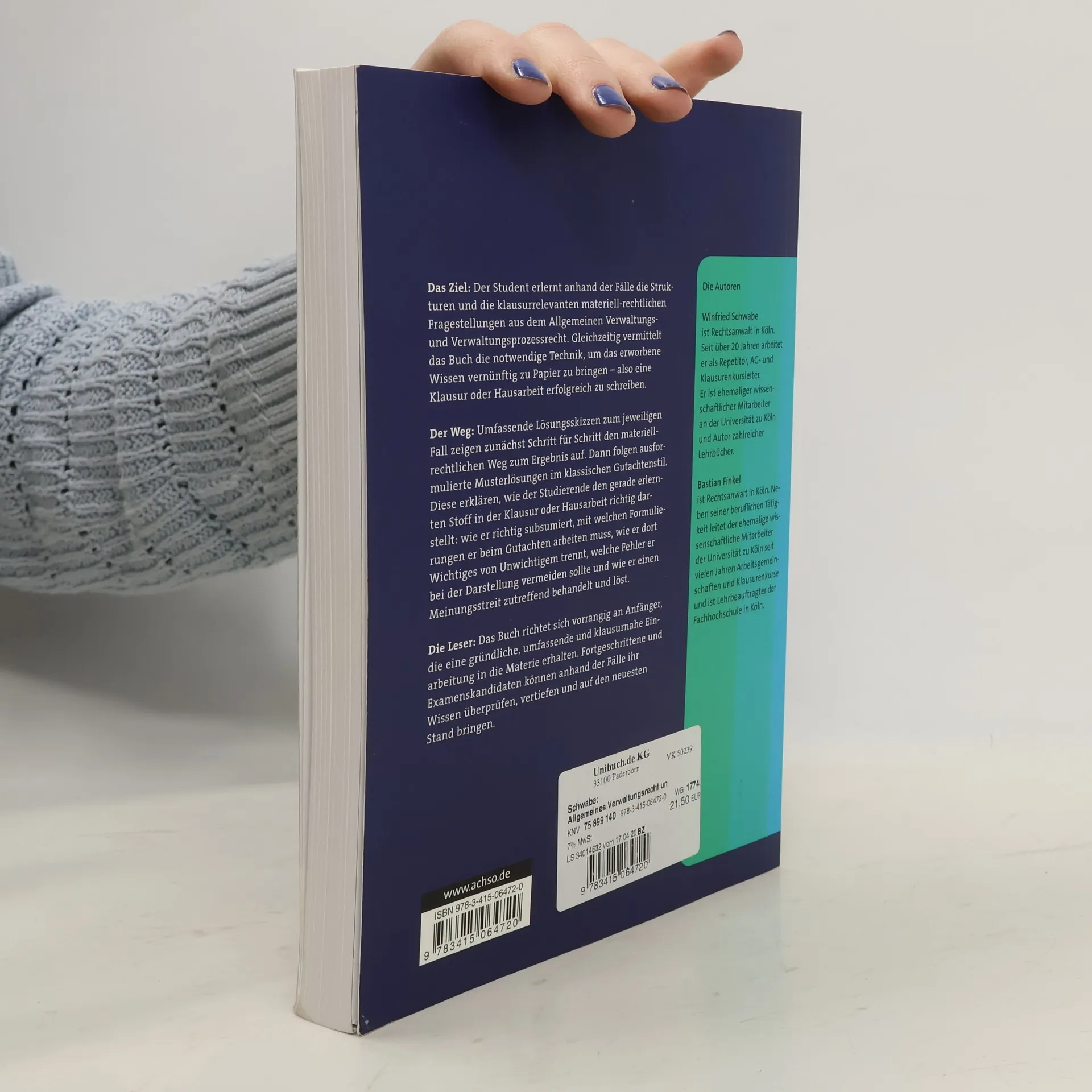 Klausurrelevante Themen Das Buch stellt die prüfungsrelevanten Themen und Probleme des Allgemeinen Verwaltungsrechts und des Verwaltungsprozessrechts verständlich dar. Fälle zum Verwaltungsrecht Sie begreifen anhand der Fälle die Strukturen und die materiell-rechtlichen Probleme des Öffentliche Rechts. Schritt für Schritt zur Musterlösung Umfassende Lösungsskizzen zum jeweiligen Fall zeigen Ihnen Schritt für Schritt den materiell-rechtlichen und prozessualen Weg zum Ergebnis auf. Dann folgen ausformulierte Musterlösungen. Exakter Gutachtenstil Die jeweilige Musterlösung im Gutachtenstil erklärt, wie Sie den gerade erlernten Stoff in der Klausur oder Hausarbeit richtig darstellen: Richtig subsumieren Passende Formulierungen beim Gutachten verwenden Wichtiges von Unwichtigem trennen Fehler bei der Darstellung vermeiden Einen Meinungsstreit zutreffend behandeln und lösen Erfolgreiche Hausarbeits- und Klausurtechnik Das Buch vermittelt die notwendige Technik, um das erworbene Wissen vernünftig zu Papier zu bringen. So schreiben Sie erfolgreich Ihre nächste Klausur oder Hausarbeit. Für Anfänger und Fortgeschrittene Die Fallsammlung richtet sich vorrangig an Anfänger, die eine umfassende und klausurnahe Einarbeitung in die Materie erhalten. Fortgeschrittene und Examenskandidaten können anhand der Fälle ihr Wissen überprüfen, vertiefen und auf den neuesten Stand bringen.