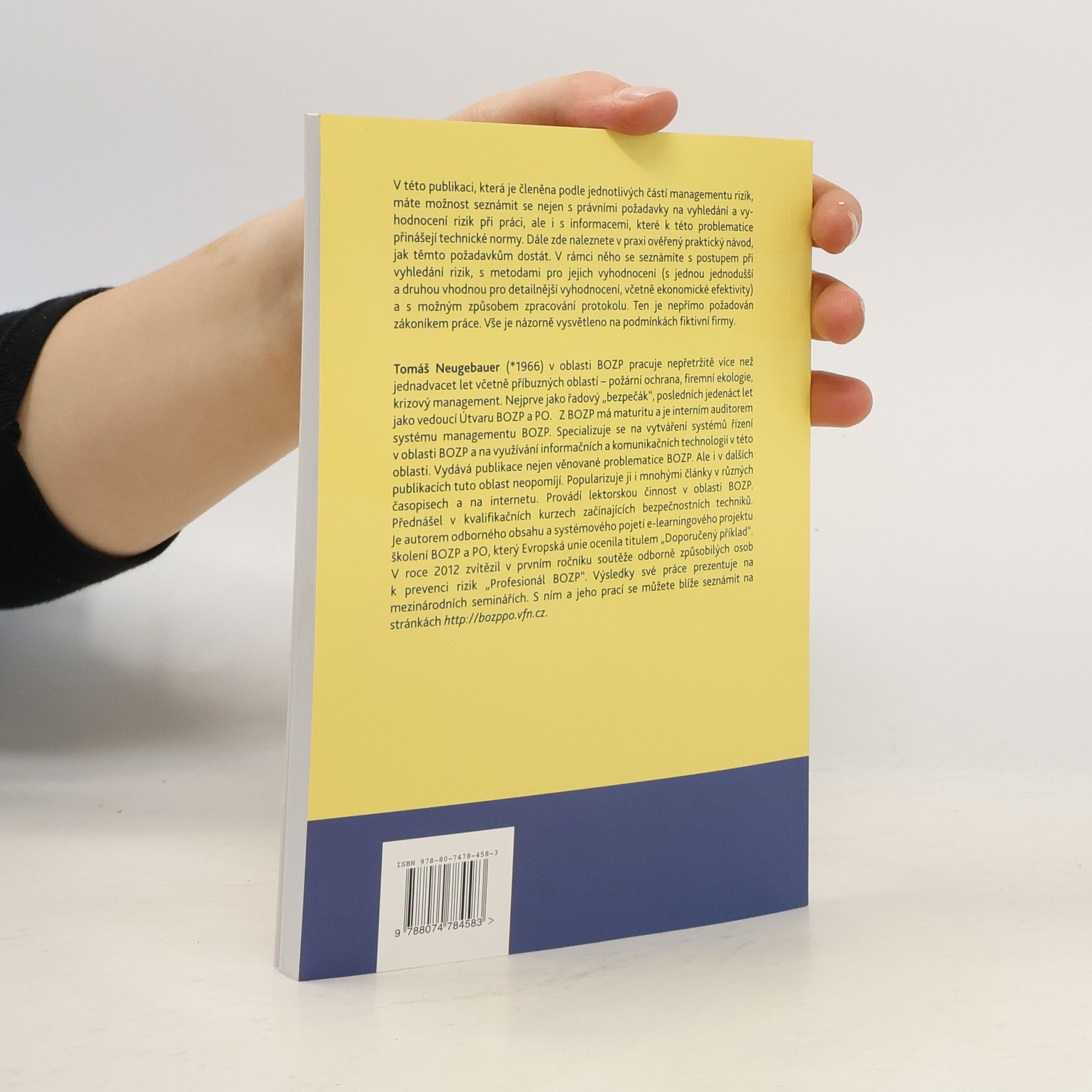 V této publikaci, která je členěna podle jednotlivých částí managementu rizik, máte možnost seznámit se nejen s právními požadavky na vyhledání a vyhodnocení rizik při práci, ale i s informacemi, které k této problematice přinášejí technické normy. Dále zde naleznete v praxi ověřený praktický návod, jak těmto požadavkům dostát. V rámci něho se seznámíte s postupem při vyhledání rizik, s dvěma metodami pro jejich vyhodnocení (s jednou jednodušší a druhou vhodnou pro detailnější vyhodnocení včetně ekonomické efektivity) a s možným způsobem zpracování protokolu. Ten je nepřímo požadován zákoníkem práce. Vše je názorně vysvětleno na podmínkách fiktivní firmy.