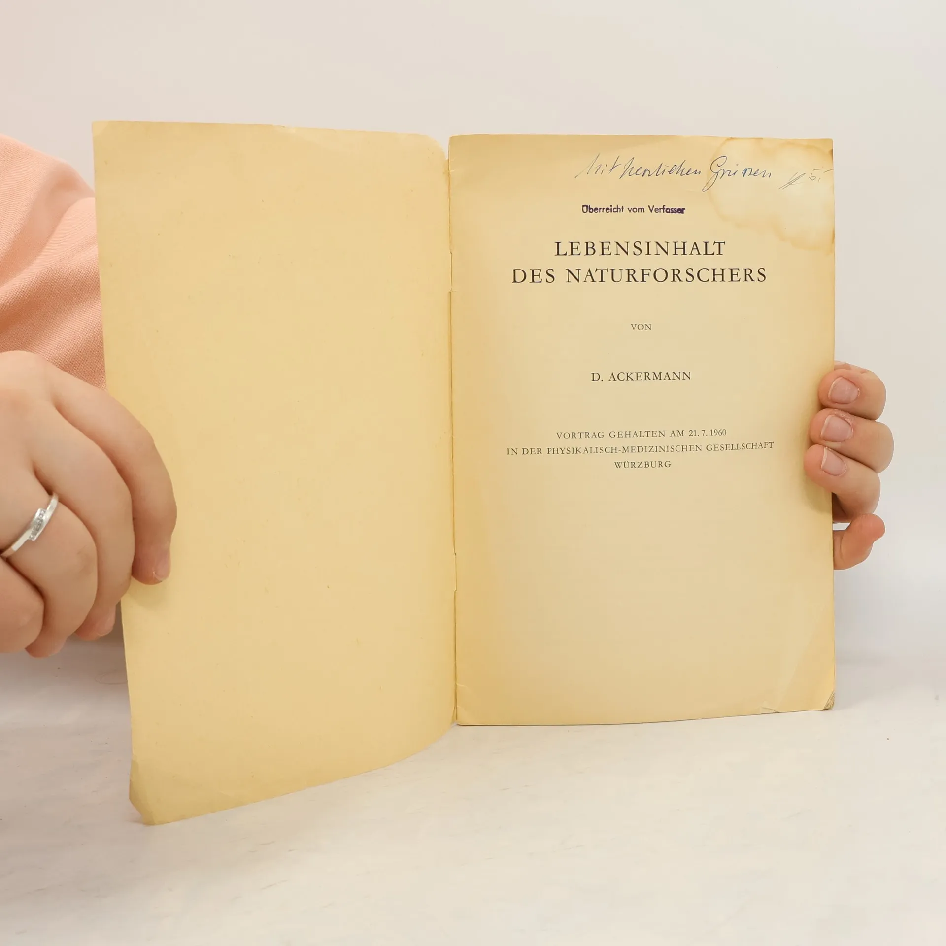 Lebensinhalt des Naturforschers, Dankwart Ackermann