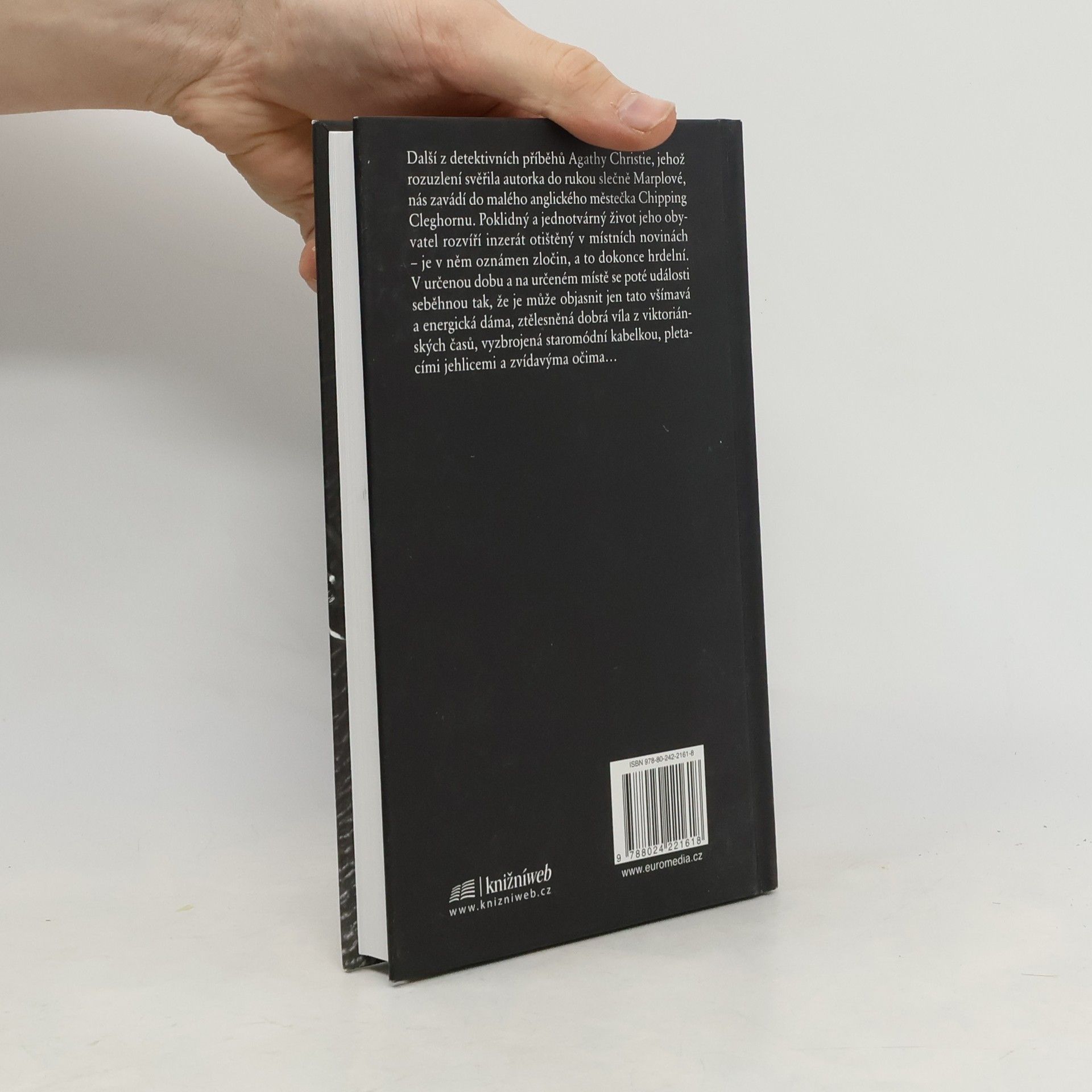 Další z detektivních příběhů Agathy Christie, jehož rozuzlení svěřila autorka do rukou slečně Marplové, nás zavádí do malého anglické městečka Chipping Cleghorn. Poklidný a jednotvárný život jeho obyvatel rozvíří inzerát otištěný v místních novinách – je v něm oznámen zločin, a to dokonce hrdelní. V určenou dobu a na určeném místě se poté události seběhnou tak, že je může objasnit jen tato všímavá a energická dáma, ztělesněná dobrá víla z viktoriánských časů, vyzbrojená staromódní kabelkou, pletacími jehlicemi a zvídavýma očima...