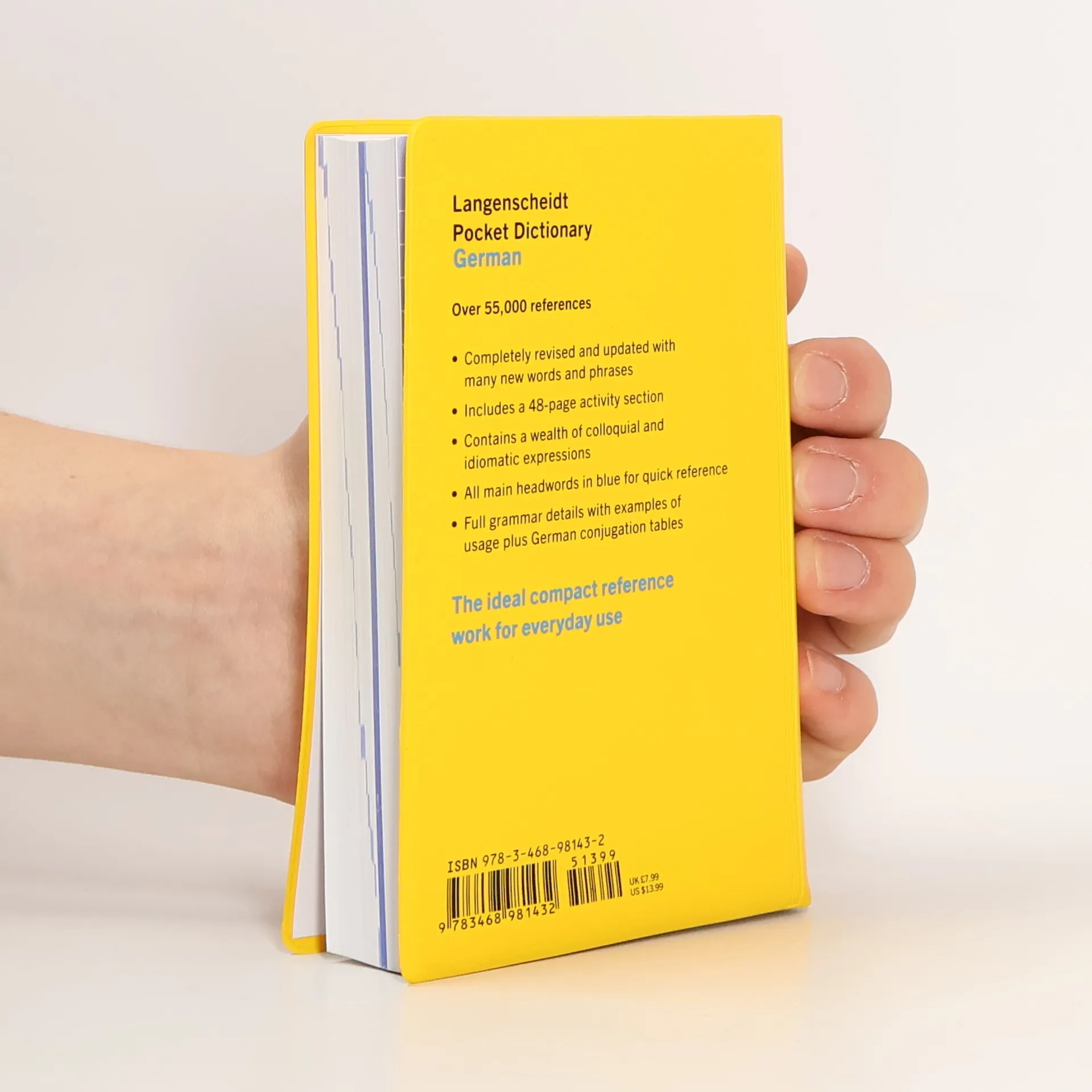 Value priced, durable, and easily portable, this dictionary is ideal for students and travelers. Around 50,000 references Robust vinyl cover User-friendly layout with all main headwords in blue for quick reference Comprehensive vocabulary with many idiomatic and colloquial expressions Useful appendices with extra grammar information 48-page Activity Section