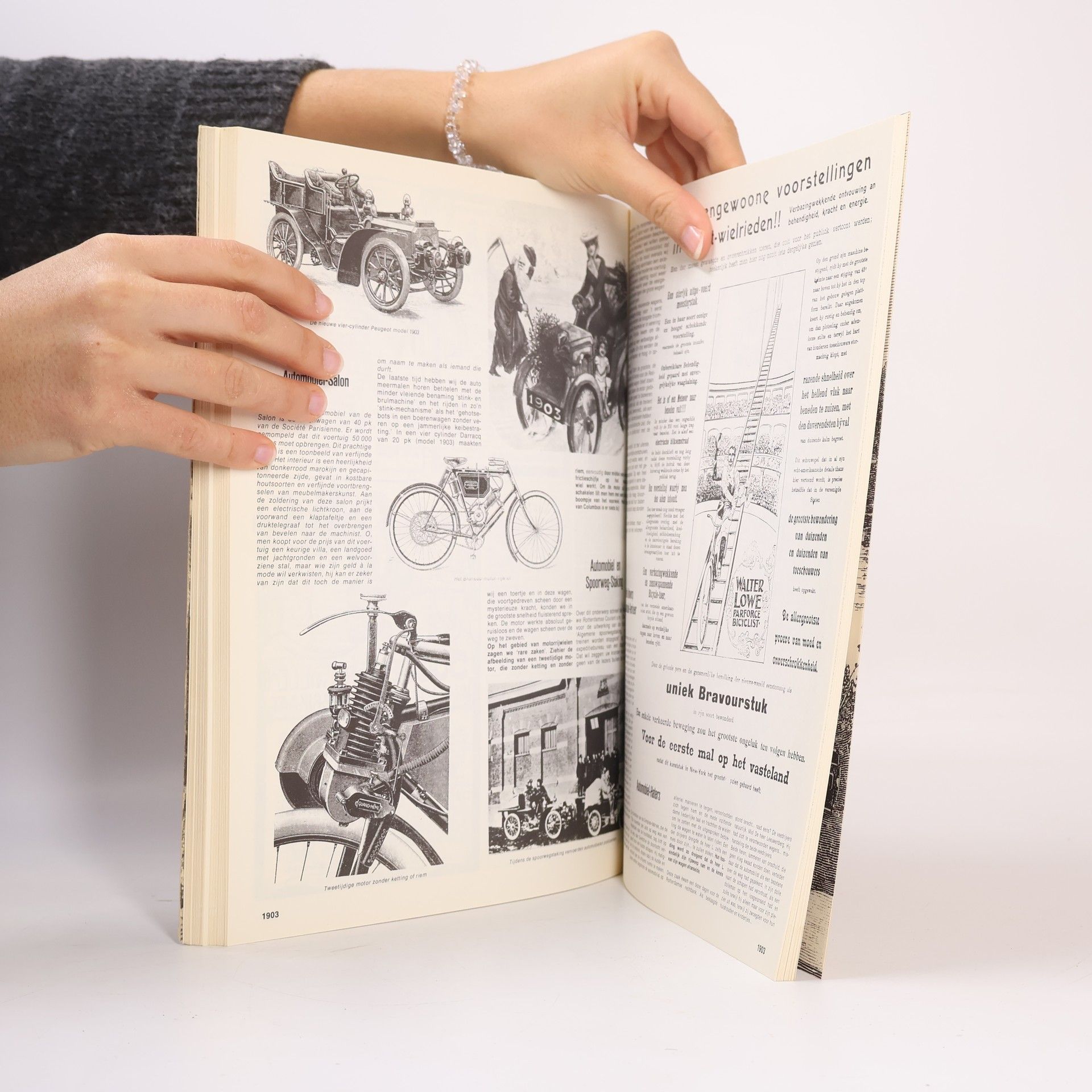 De dolle entree van automobiel en velocipee