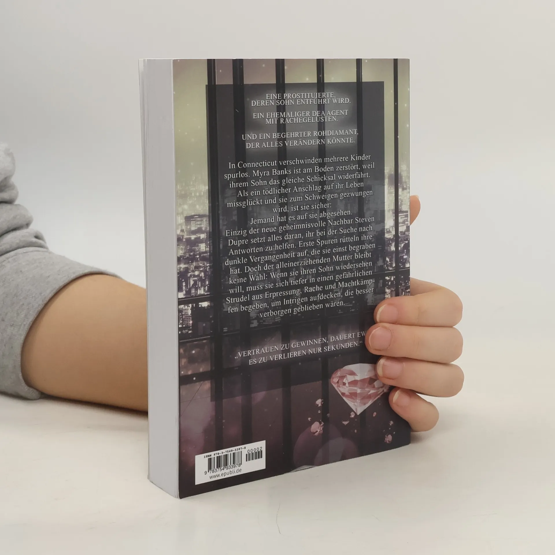 Eine Prostituierte, deren Sohn entführt wird.Ein ehemaliger DEA Agent mit Rachegelüsten.Und ein begehrter Rohdiamant, der alles verändern könnte.In Connecticut verschwinden mehrere Kinder spurlos. Myra Banks ist am Boden zerstört, weil ihrem Sohn das gleiche Schicksal widerfährt. Als ein tödlicher Anschlag auf ihr Leben missglückt und sie zum Schweigen gezwungen wird, ist sie Jemand hat es auf sie abgesehen. Einzig der neue geheimnisvolle Nachbar Steven Dupre setzt alles daran, ihr bei der Suche nach Antworten zu helfen. Erste Spuren rütteln ihre dunkle Vergangenheit auf, die sie einst begraben hat. Doch der alleinerziehenden Mutter bleibt keine Wenn sie ihren Sohn wiedersehen will, muss sie sich tiefer in einen gefährlichen Strudel aus Erpressung, Rache und Machtkämpfen begeben, um Intrigen aufzudecken, die besser verborgen geblieben wären.Vertrauen zu gewinnen dauert ewig. Es zu verlieren nur Sekunden.