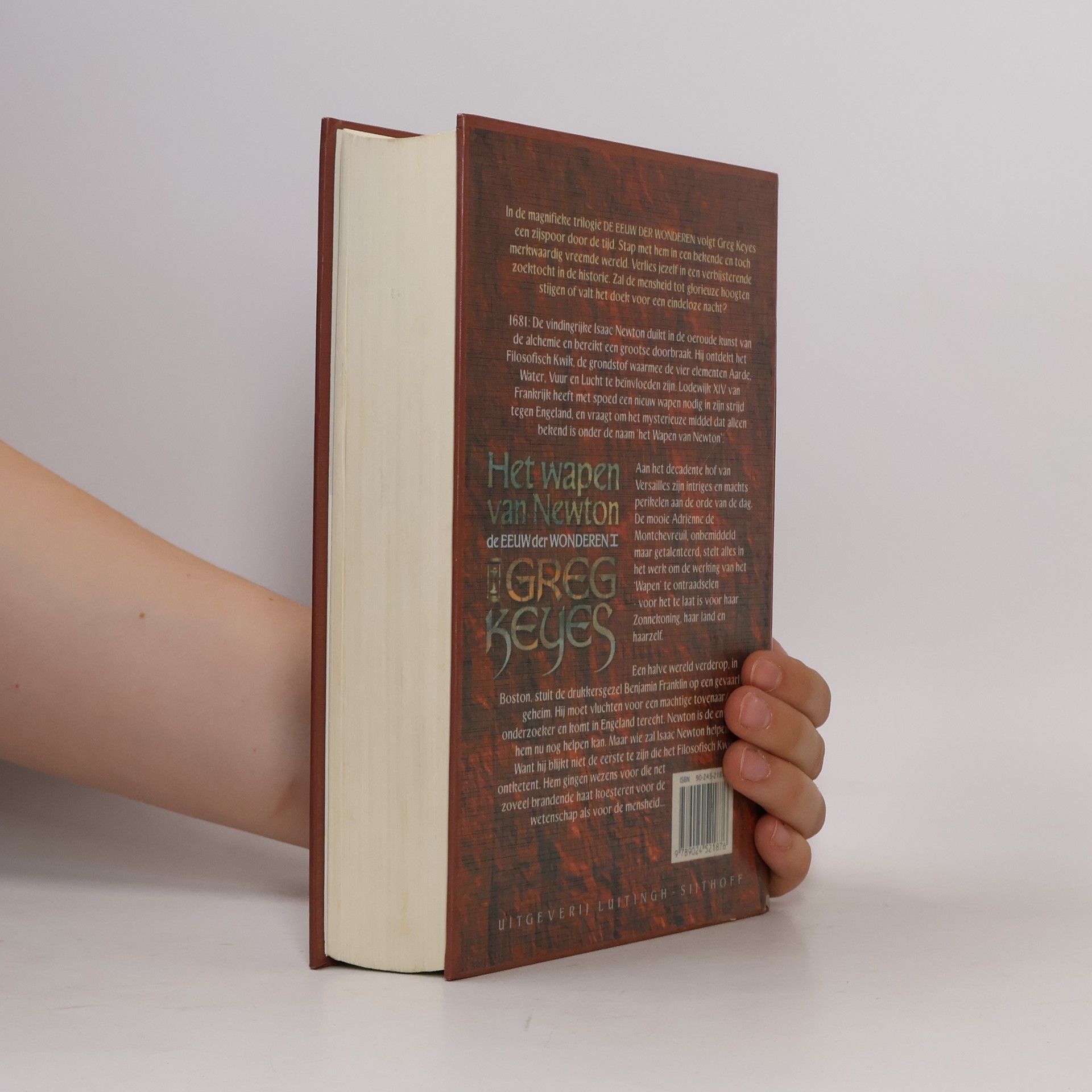 In de trilogie DE EEUW DER WONDEREN neemt Greg Keyes je mee op een intrigerende reis door de tijd. Ontdek een wereld die zowel vertrouwd als vreemd aanvoelt, terwijl je je verliest in een fascinerende historische zoektocht. In 1681 doet Isaac Newton een grote ontdekking in de alchemie: het Filosofisch Kwik, een stof die de vier elementen Aarde, Water, Vuur en Lucht kan beïnvloeden. Lodewijk XIV van Frankrijk heeft dringend een nieuw wapen nodig voor zijn strijd tegen Engeland en vraagt om het mysterieuze 'Wapen van Newton'. Aan het hof van Versailles zijn intriges en machtsstrijden aan de orde van de dag. De talentvolle maar onbemiddelde Adrienne de Montchevreuil doet er alles aan om het geheim van het 'Wapen' te ontrafelen voordat het te laat is voor haar Zonnekoning en haar land. Ondertussen ontdekt de drukkersgezel Benjamin Franklin in Boston een gevaarlijk geheim en moet hij vluchten voor een machtige tovenaar. Zijn enige hoop ligt bij Newton, maar ook hij heeft hulp nodig. Newton is niet de eerste die het Filosofisch Kwik ontketent; er zijn wezens die evenveel haat voor de wetenschap als voor de mensheid koesteren.