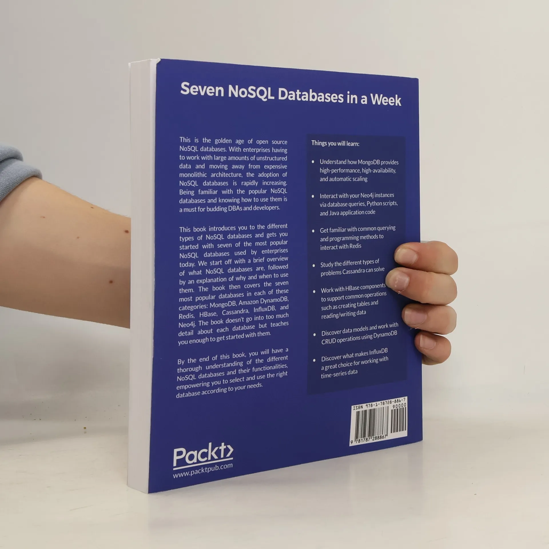 This beginner's guide helps you get started with seven popular NoSQL databases: Cassandra, DynamoDB, HBase, InfluxDB, MongoDB, Neo4j, and Redis. It covers the basics of each database and their enterprise applications, providing a quick introduction to their functionalities and effective techniques for querying and management. As enterprises increasingly handle large volumes of unstructured data, the adoption of NoSQL databases is on the rise, making familiarity with these systems essential for aspiring DBAs and developers. The book begins with an overview of NoSQL databases, explaining their purpose and appropriate use cases. It then delves into each of the seven databases, offering enough information to help you start using them without overwhelming detail. By the end, you will have a solid understanding of the different NoSQL options available, equipping you to choose the right database for your needs. Key learning points include how MongoDB ensures high performance and scalability, interacting with Neo4j through queries and scripts, common methods for working with Redis, and the types of problems Cassandra addresses. You will also learn about HBase operations, CRUD actions in DynamoDB, and the advantages of InfluxDB for time-series data. This guide is ideal for new DBAs and developers, as well as relational DBAs seeking insights into NoSQL databases.