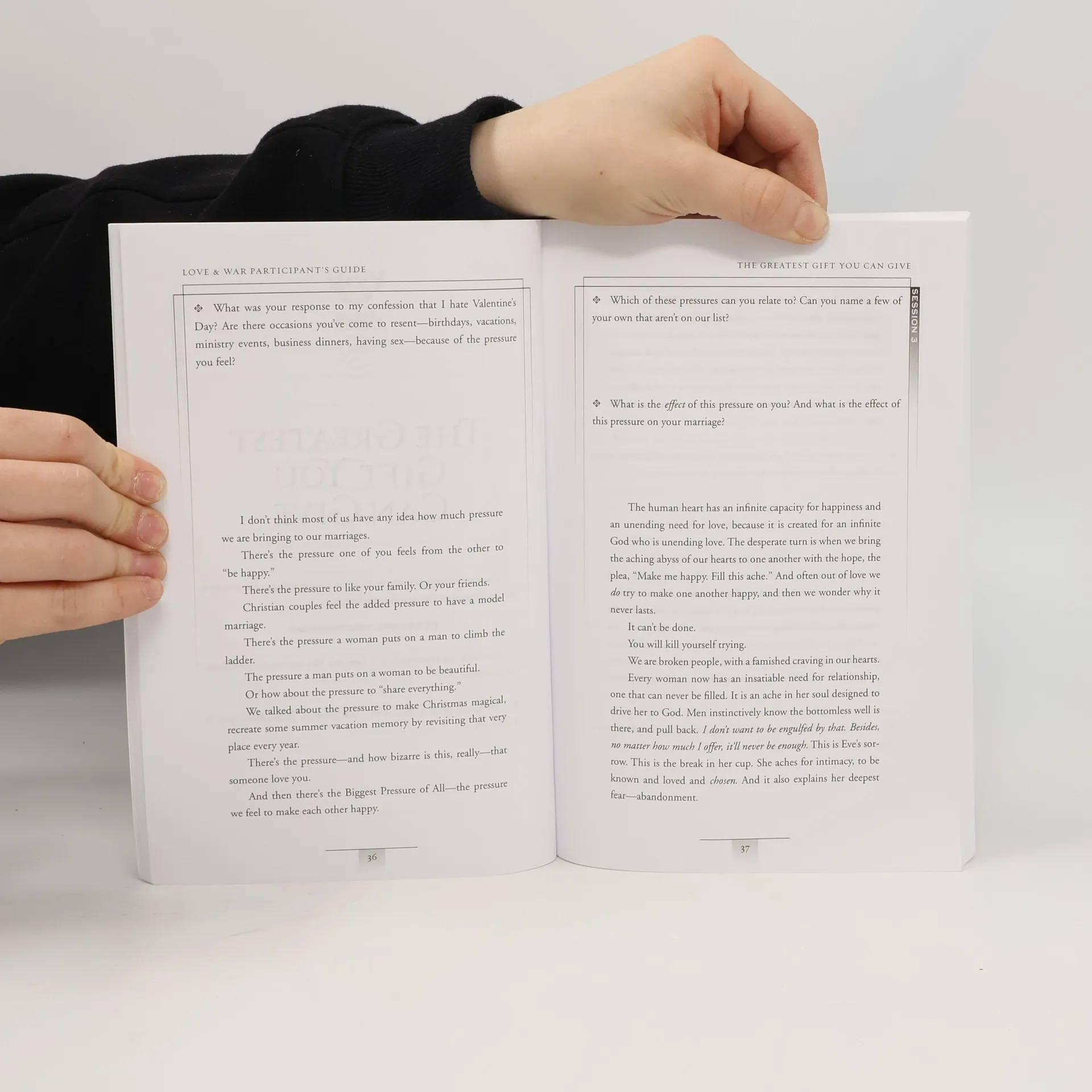 Through the eight-session video-based small group bible study (DVD/digital video sold separately), Love & War , John and Stasi Eldredge help you and your spouse take marriage to new levels through developing deeper intimacy and stepping into the great adventure God has waiting for you … together! With refreshing openness that grabs you from the first words, bestselling authors John and Stasi Eldredge candidly discuss their own marriage and the insights they’ve gained from the challenges they’ve faced. Each of them talks independently about what they’ve learning, giving their guidance a personal immediacy and balance between the male and female perspectives – a unique feature of this study. Both John and Stasi have discovered that once couples begin moving past the shame and confusion surrounding the undertaking of marriage, they learn to fight for love and happiness – and to step into what God has in store for them. This Participant Guide is filled with helpful discussion starters, video overviews, a helpful Leader’s Guide and much more. Sessions Designed for use with the Love and War Video Study (sold separately).