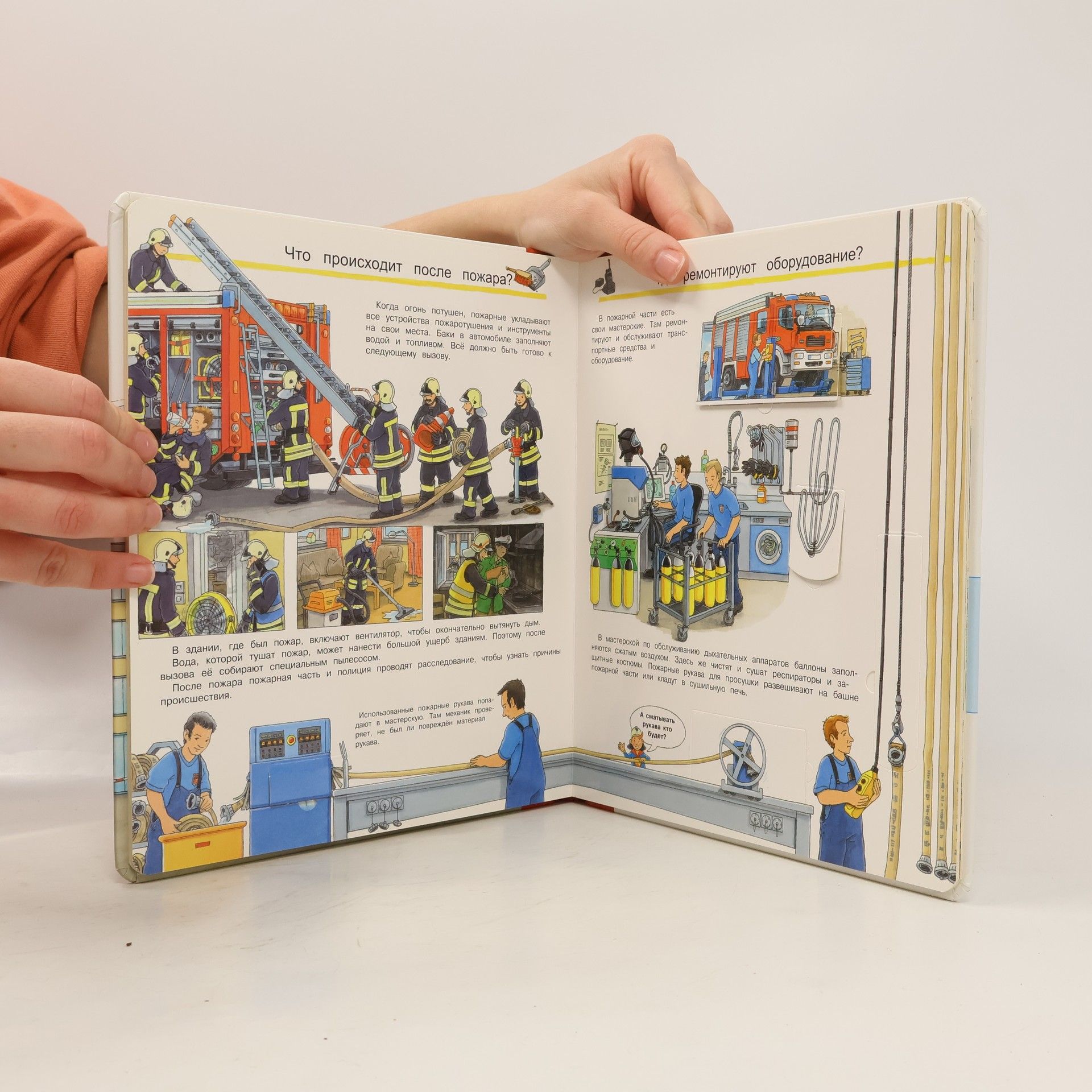 Ship from Germany, hardcover. Izdanie mozhno ispol'zovat' v kachestve original'nogo uchebnogo posobija dlja detej mladshego shkol'nogo vozrasta, kotoroe nepremenno zainteresuet rebenka i pokorit serdce vzroslogo, pomozhet prevratit' process poluchenija novyh znanij v ochen' interesnoe i uvlekatel'noe zanjatie. Jarkaja i privlekatel'naja kniga uvelichennogo formata napechatana na vysokokachestvennom laminirovannom kartone povyshennoj prochnosti s zakruglennymi krajami stranic. Na kazhdom knizhnom razvorote jenciklopedii vnimanie junogo pochemuchki privlekut krasochnye i realistichnye sjuzhetnye izobrazhenija razlichnyh situacij, svjazannyh s rabotoj pozharnoj sluzhby. Jeto naznachenie i ustrojstvo pozharnoj chasti, posledovatel'nost' dejstvij ejo sotrudnikov pri vyzove na tushenie pozhara ili v sluchae drugoj jekstremal'noj situacii, raznoobraznye vidy pozharnoj tehniki i pozharnogo snarjazhenija, pravila pozharnoj bezopasnosti i osobennosti organizacii pozharnoj sluzhby v drugih stranah. Tshhatel'no prorisovannye kartinki mozhno rassmatrivat' chasami, zamechaja i otkryvaja dlja sebja novye maloizvestnye udivitel'nye fakty o neobhodimoj i vazhnoj professii pozharnyh, a mnogochislennye okoshki i klapany s razlichnoj dopolnitel'noj informaciej ne tol'ko dadut neobhodimye pojasnenija i ischerpyvajushhie otvety na voprosy rebjonka, no i prevratjat chtenie v uvlekatel'nuju igru, razov'jut vnimanie i ljuboznatel'nost'.