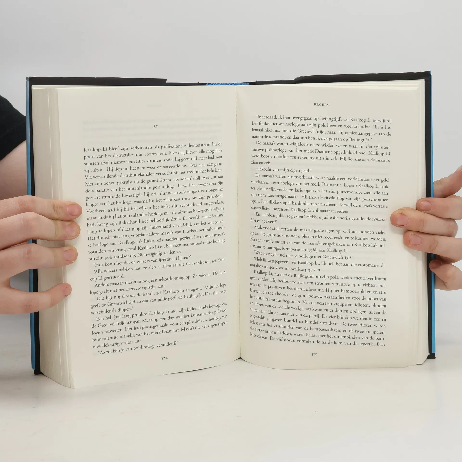 Wanneer de moeder van Kaalkop Li en de vader van Song Gang trouwen, worden de jongens broers. Ze beloven elkaar altijd trouw te blijven, maar hun verbond wordt flink op de proef gesteld wanneer China door de toenemende welvaart verandert. Kaalkop Li omarmt het opkomende kapitalisme en wordt een succesvol zakenman. Met zijn handel in vuilnis en het organiseren van missverkiezingen sprokkelt hij miljoenen bij elkaar. Zijn stiefbroer Song Gang is een dromer die van boeken houdt, een goeiige sul - misschien wel een beetje te goed voor het moderne China. Ook Song wil een graantje meepikken van de economische vooruitgang. Maar waar Li slapend rijk lijkt te worden, gaat Song aan hard werken en jammerlijke pech ten onder. Broers is het meeslepende, beurtelings hilarische en ontroerende verhaal van twee broers die de waanzin van de Culturele Revolutie overleven en in het nieuwe China hun geluk beproeven. Met zijn soepele pen en cynische humor tekent auteur Yu Hua in deze veertig jaar omspannende roman een scherp en onthutsend portret van een land dat zich na jaren van geweld en oppressie over lijkt te geven aan ongebreidelde commercialisme.