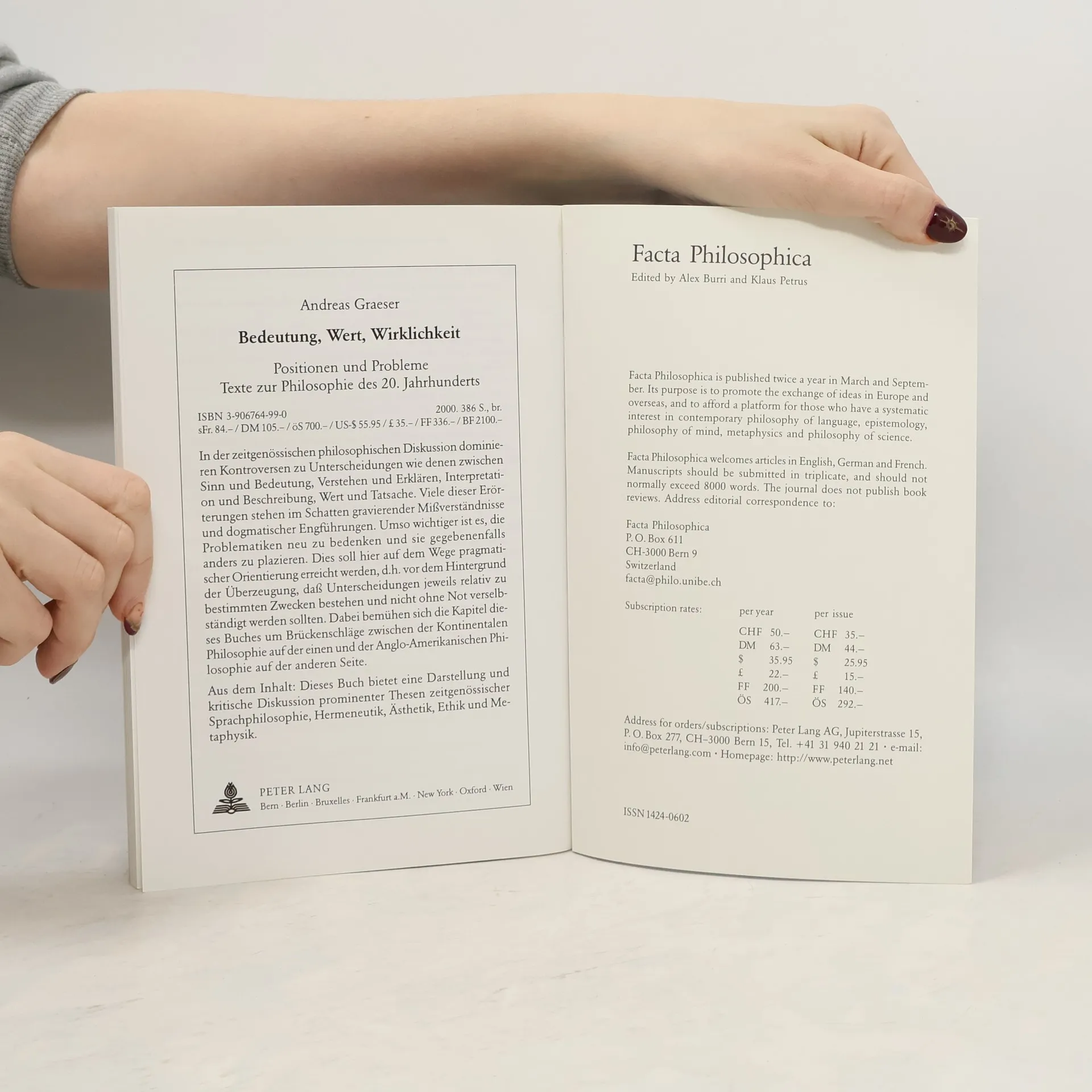 Facta Philosophica, Alex Burri, Klaus Petrus