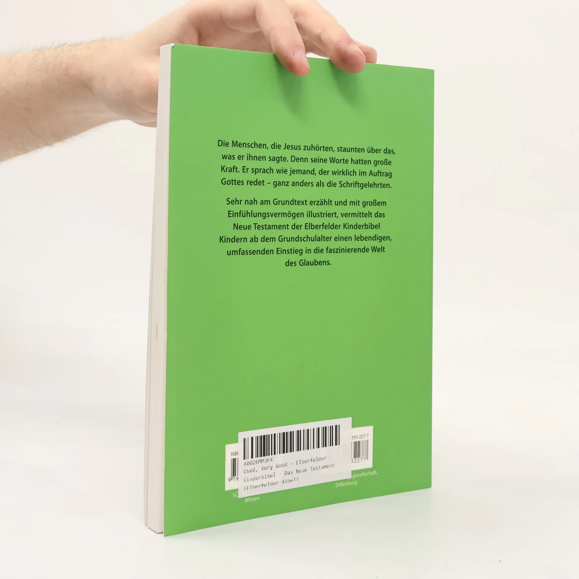Die Texte von Martina Merckel-Braun und Judith Arndts Bilder machen die Bibel für Grundschüler verständlich, ohne sich ausschmückend vom Original zu entfernen. Im Stil der Elberfelder Bibelübersetzung orientieren sich die Bibelgeschichten stark am Grundtext, entsprechen aber dem Sprachschatz der Kinder und ihrer Erfahrungswelt. Neben der kompletten Elberfelder Kinderbibel gibt es nun auch diese günstige Verteilausgabe mit dem Neuen Testament.