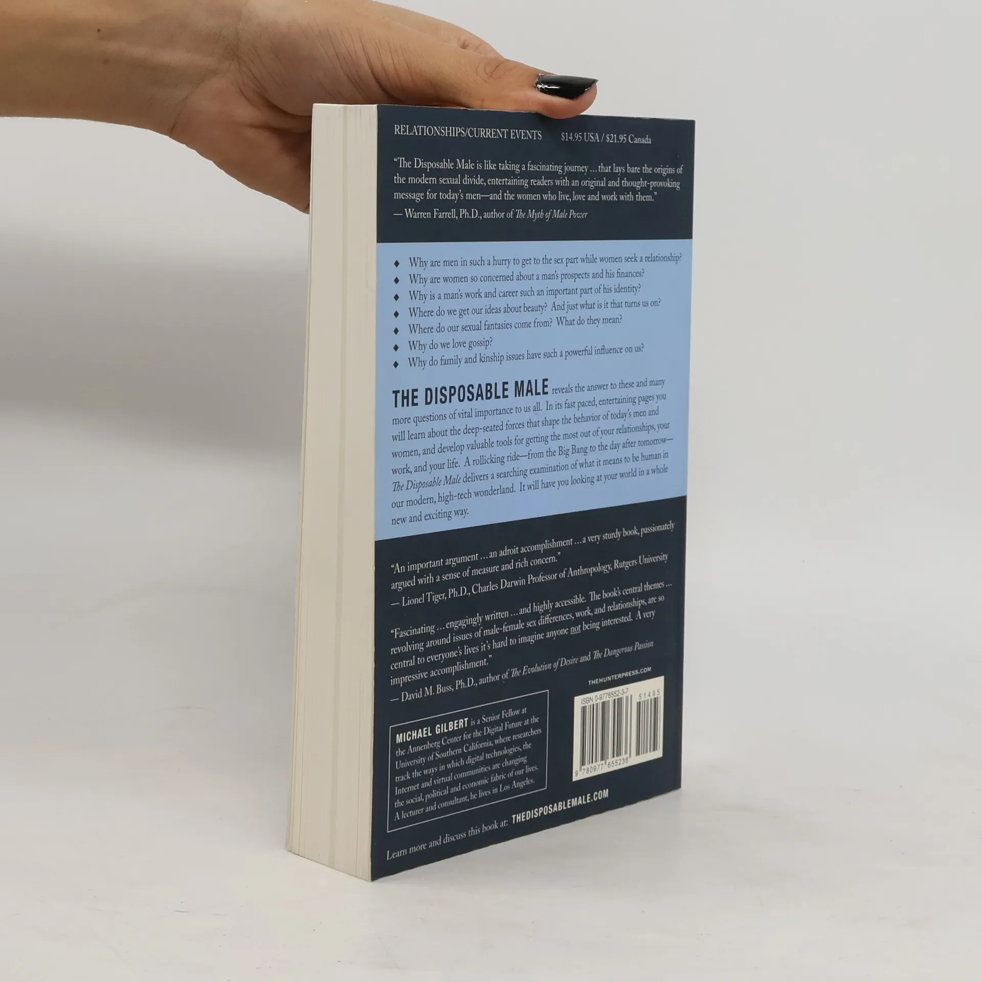 In The Disposable Male , Michael Gilbert takes on the important questions in life—who we fall in love with and why, how we feel about sex, marriage, family and career—exposing the deep and fundamental underlying forces that continue to shape the pivotal issues of vital concern to us all. The early chapters frame an evolutionary perspective for readers with an entertaining, informative, and original look at how we humans got here while later chapters deploy this unique and powerful lens in a searching examination of our modern, high-tech world. Bold, irreverent, funny and thought-provoking, The Disposable Male will provide readers with fresh and penetrating insights and valuable tips for dealing with the issues that matter so much in our hectic contemporary lives. It will have you looking at your world in new and exciting ways.
