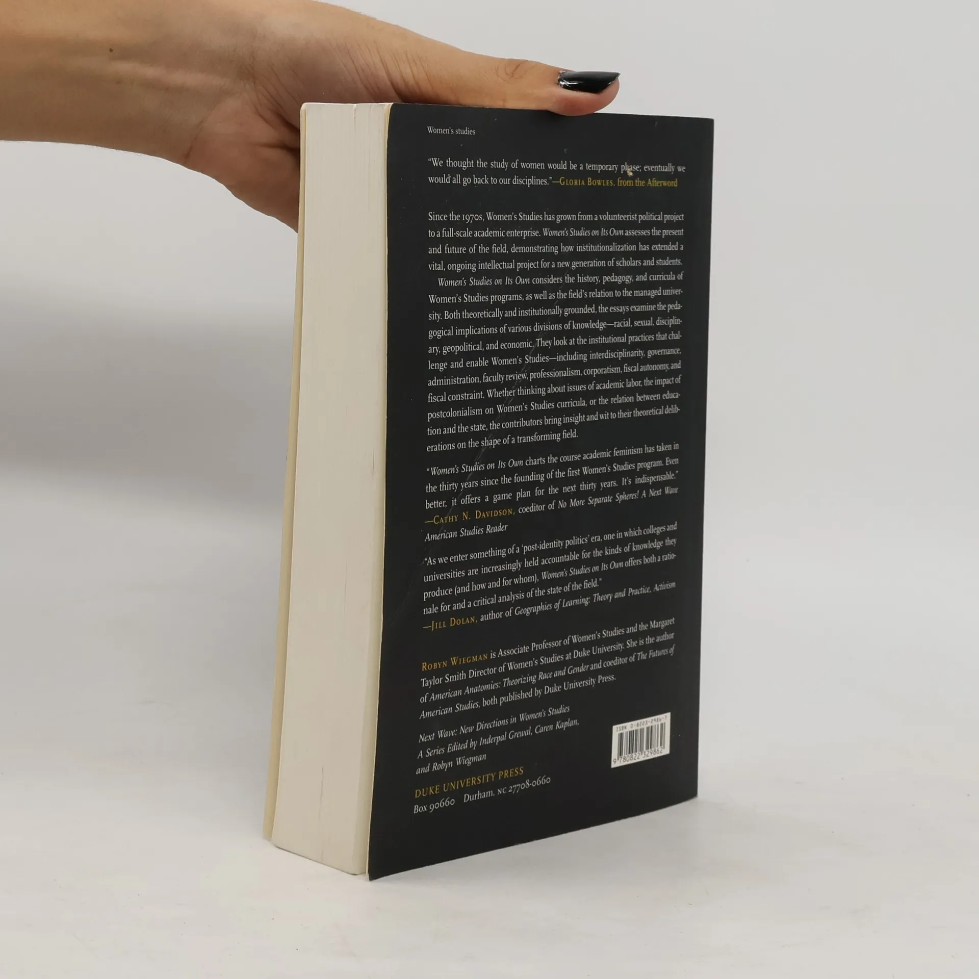 "We thought the study of women would be a temporary phase; eventually we would all go back to our disciplines."—Gloria Bowles, From the AfterwordSince the 1970s, Women's Studies has grown from a volunteerist political project to a full-scale academic enterprise. Women's Studies on Its Own assesses the present and future of the field, demonstrating how institutionalization has extended a vital, ongoing intellectual project for a new generation of scholars and students.Women’s Studies on Its Own considers the history, pedagogy, and curricula of Women’s Studies programs, as well as the field’s relation to the managed university. Both theoretically and institutionally grounded, the essays examine the pedagogical implications of various divisions of knowledge—racial, sexual, disciplinary, geopolitical, and economic. They look at the institutional practices that challenge and enable Women’s Studies—including interdisciplinarity, governance, administration, faculty review, professionalism, corporatism, fiscal autonomy, and fiscal constraint. Whether thinking about issues of academic labor, the impact of postcolonialism on Women’s Studies curricula, or the relation between education and the state, the contributors bring insight and wit to their theoretical deliberations on the shape of a transforming field.Contributors. Dale M. Bauer, Kathleen M. Blee, Gloria Bowles, Denise Cuthbert, Maryanne Dever, Anne Donadey, Laura Donaldson, Diane Elam, Susan Stanford Friedman, Judith Kegan Gardiner, Inderpal Grewal, Sneja Gunew, Miranda Joseph, Caren Kaplan, Rachel Lee, Devoney Looser, Jeanette McVicker, Minoo Moallem, Nancy A. Naples, Jane O. Newman, Lindsey Pollak, Jean C. Robinson, Sabina Sawhney, Jael Silliman, Sivagami Subbaraman, Robyn Warhol, Marcia Westkott, Robyn Wiegman, Bonnie Zimmerman