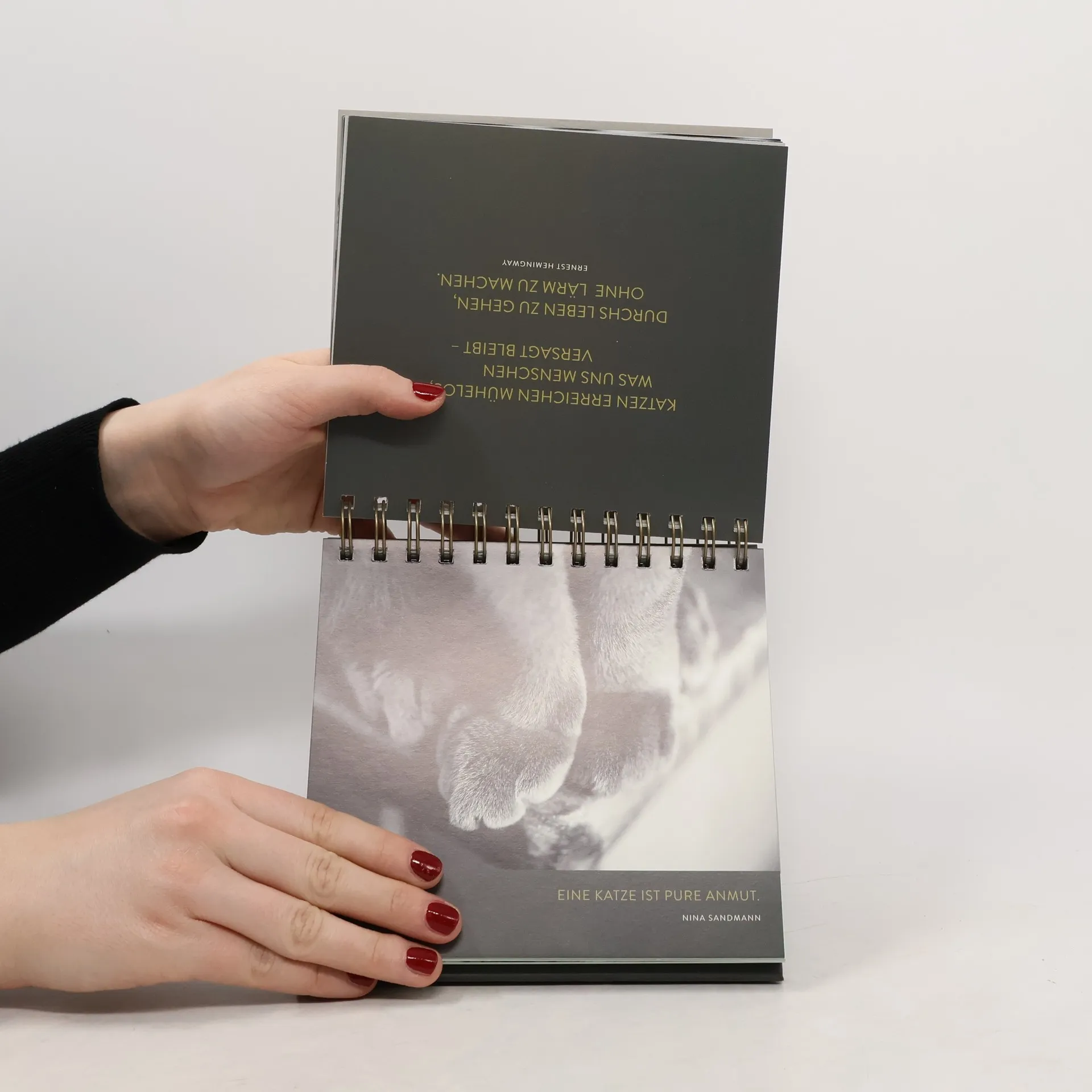 Originelle Geschenkidee für Katzen-Liebhaber Ihre Schwester, Kollegin oder eine gute Freundin sind große Katzen-Liebhaber? Oder sind Sie vielleicht selbst ein Fan von Stubentigern und Samtpfoten? Dann ist der Spiralaufsteller mit inspirierenden Weisheiten genau das richtige Geschenk: Ob zum Geburtstag, zu Weihnachten oder einfach so statt Blumen. Machen Sie allen Katzenfreunden eine kleine Aufmerksamkeit mit diesem wundervoll dekorativen Aufsteller. Großartiger Katzen-Aufsteller mit Zitaten Anmutig, niedlich und neugierig: Mit edlen Schwarz-Weiß-Fotografien zeigt der Spiralaufsteller die zahlreichen Facetten einer Katze. Ergänzt wird die Optik durch zurückhaltende Muster-Hintergründe in eleganten Farben. Ein Blickfang in jedem Raum und traumhaftes Geschenk für alle Katzen-Fans! Dekoratives 144-seitiges Spiralbuch Tolle Wohnzimmer und Schreibtisch-Deko zum Aufstellen Weisheiten und Zitate über Katzen und die Entspanntheit des Katzen-Seins Moderne Schwarz-Weiß-Fotografien Edles Cover mit Goldfolie Hochwertiger Aufsteller aus festem Pappmaterial Die stabile goldene Spiralbindung ermöglicht einfaches Umblättern Hochwertiges Papier, das auf der Vorder- und Rückseite bedruckt ist