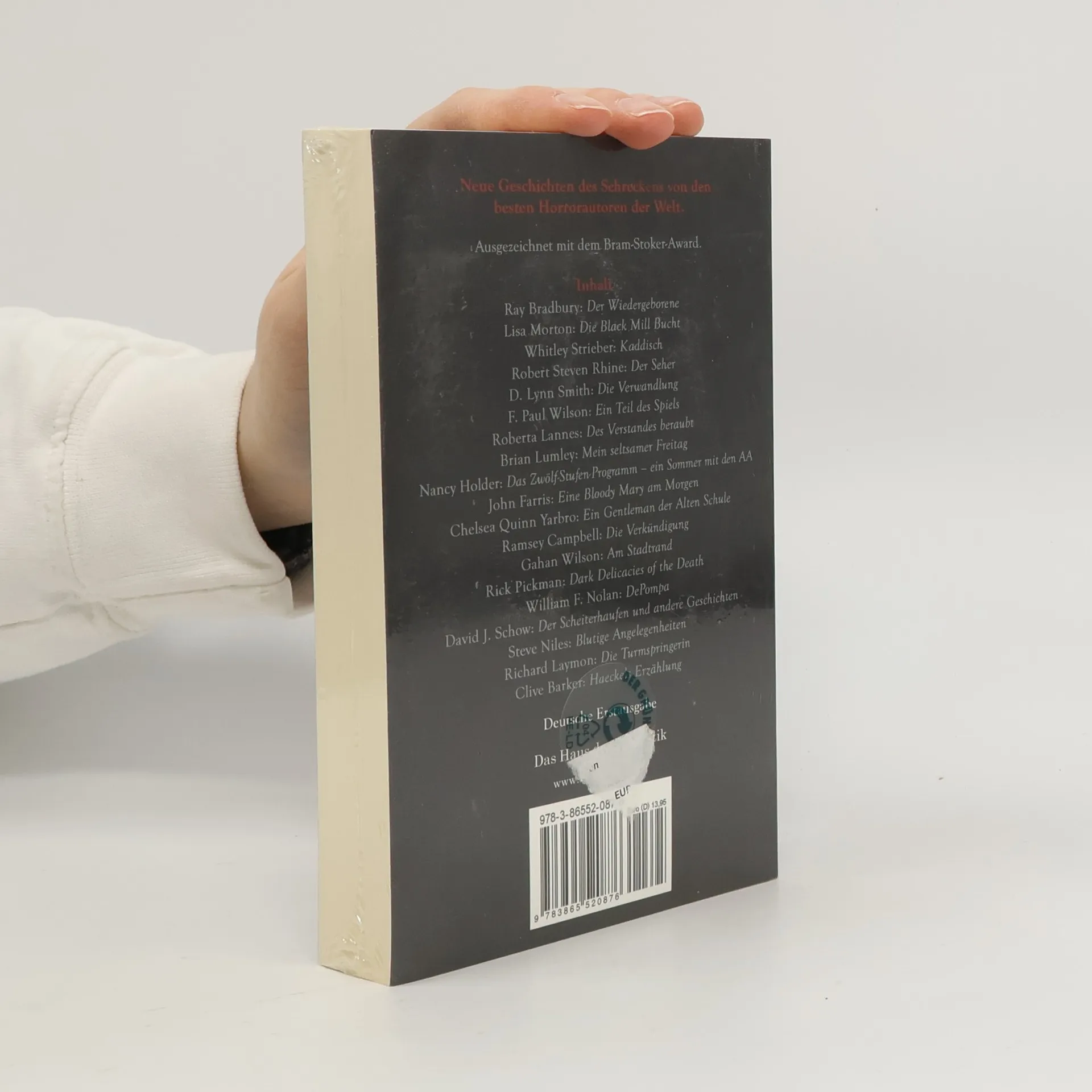 20 neue Geschichten des Schreckens u.a. von Clive Barker, Ray Bradbury, Lisa Morton, Whitley Strieber, F. Paul Wilson, Roberta Lannes, Brian Lumley, Nancy Holder, John Farris, Chelsea Quinn Yarbro, Ramsey Campbell, Gahan Wilson, Rick Pickman, William F. Nolan, David J. Schow, Steve Niles, Richard Laymon. Viele Storysammlungen versprechen sehr viel und halten es nicht – Dark Delicacies™ hält Wort – 20 Leckerbissen des Bösen! 2006 ausgezeichnet mit dem Bram-Stoker-Award als beste Horroranthologie. Deutsche Erstausgabe