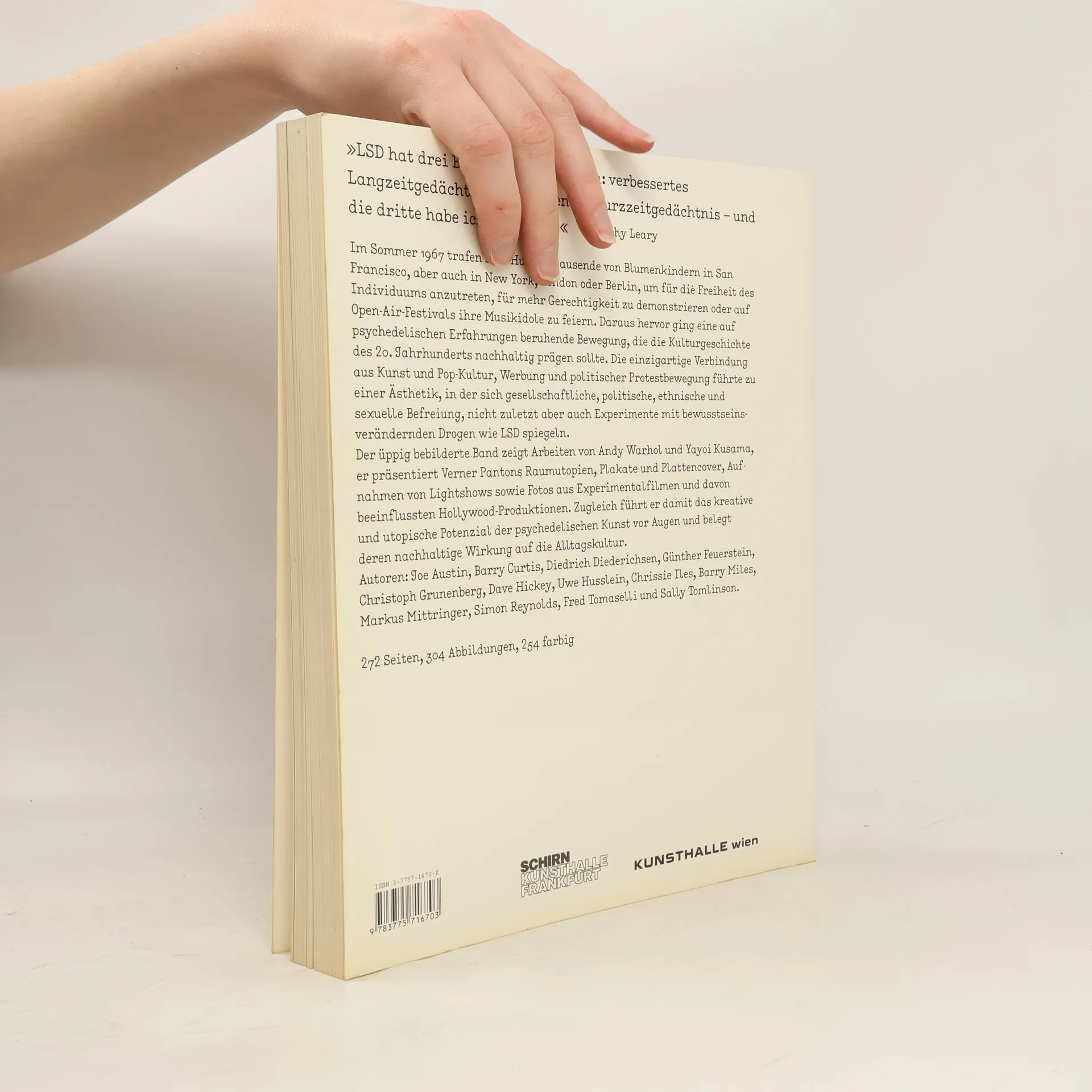 »Psychedelia« ist eines der interessantesten Phänomene der Kulturgeschichte des 20. Jahrhunderts. Summer of Love widmet sich erstmals der einzigartigen Verbindung, die in den 1960er- und 1970er-Jahren zwischen Kunst und Pop-Kultur, zwischen Werbung und politischer Protestbewegung bestand: Es entwickelte sich eine außergewöhnliche Ästhetik, in der sich gesellschaftliche, politische, ethnische und sexuelle Befreiung und nicht zuletzt Experimente mit bewusstseinsverändernden Drogen wie LSD spiegeln. Der Band präsentiert Arbeiten von Andy Warhol, Yayoi Kusama, Verner Pantons Raumutopien, Sequenzen aus Musikvideos von Velvet Underground oder Konzerten von Deep Purple sowie Fotos aus Experimentalfilmen und davon beeinflussten Hollywood-Produktionen und führt damit das große kreative und utopische Potenzial der psychedelischen Kunst vor Augen und belegt deren starke Wirkung auf die Alltagskultur. Ausstellungen: Tate Liverpool 27.5.–25.9.2005 · Schirn Kunsthalle Frankfurt 2.11.2005–12.2.2006 · Kunsthalle Wien 12.5.–3.9.2006