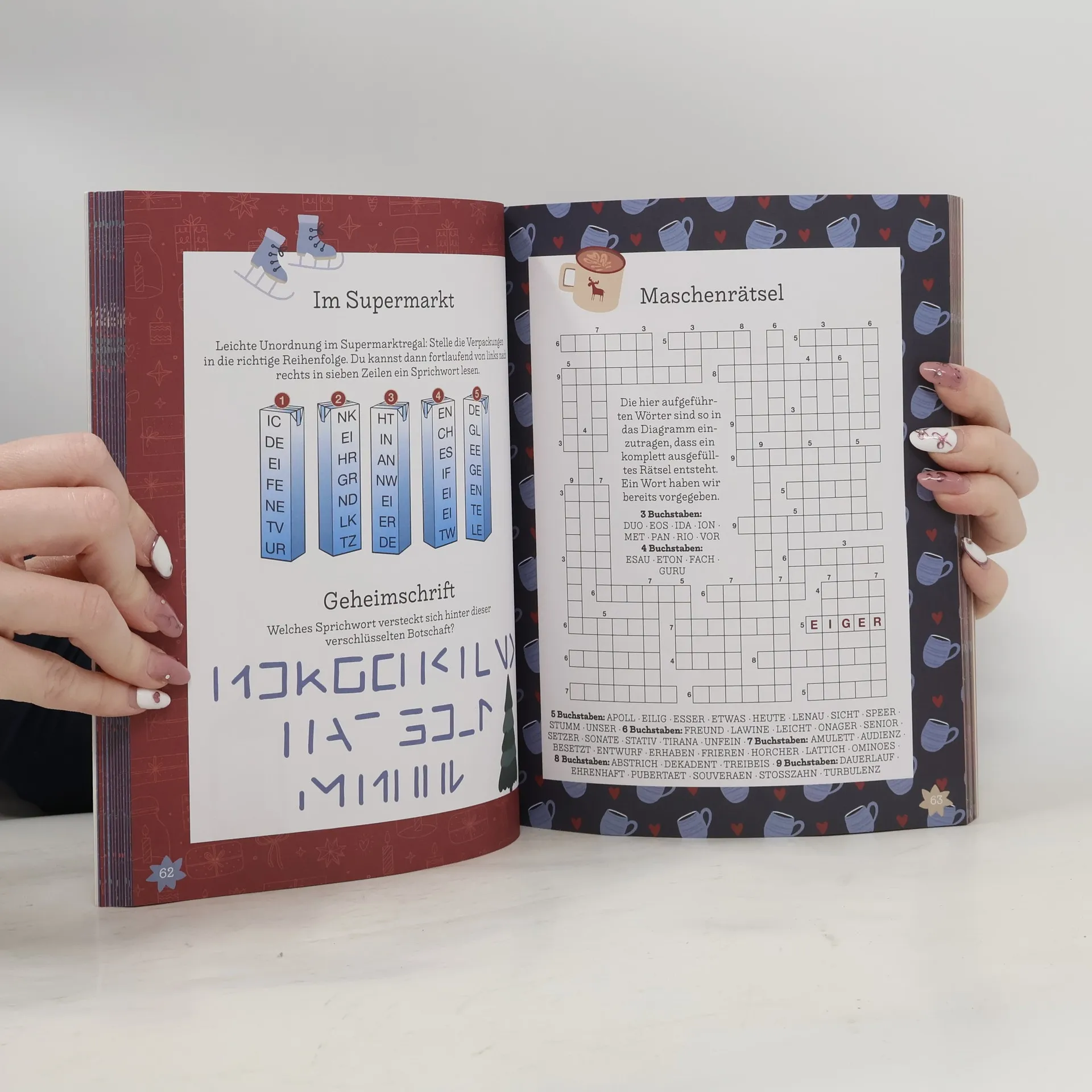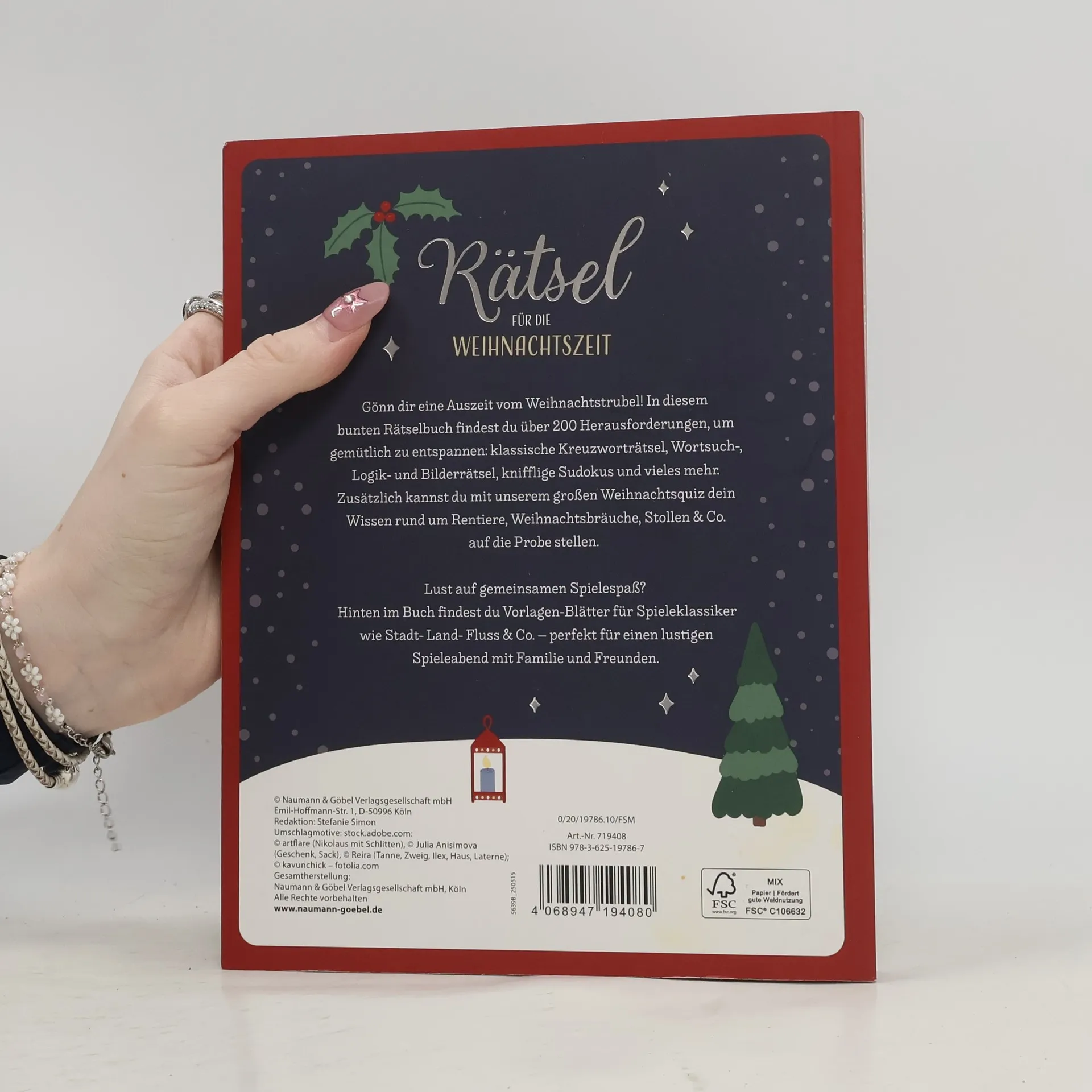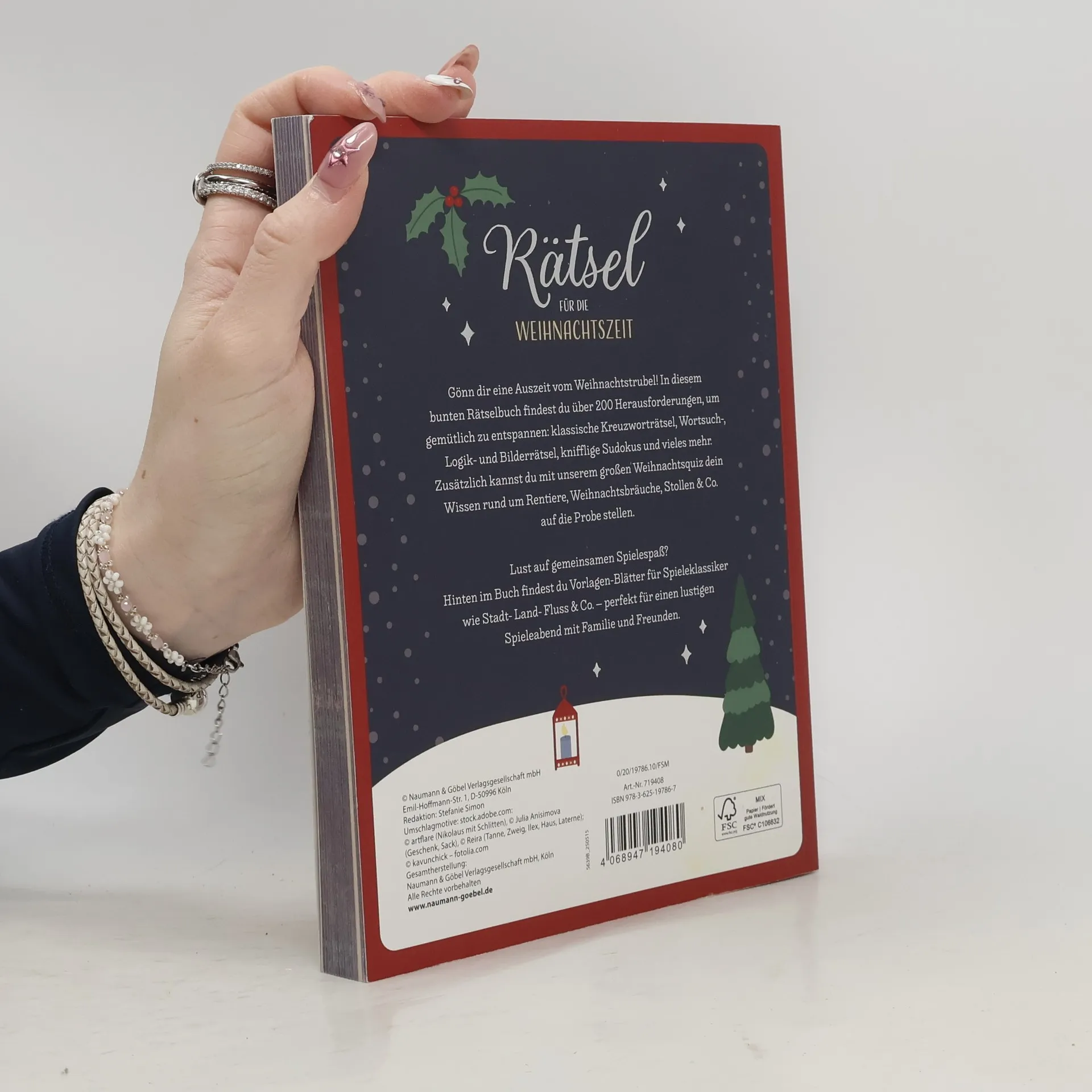 Rätsel für die Weihnachtszeit • Über 200 Rätsel • Perfekt für die gemütliche Weihnachtszeit • Die Geschnekidee für den Adventskalender oder fürs Wichteln Gönn dir eine Auszeit vom Weihnachtstrubel! In diesem bunten Rätselbuch findest du über 200 Herausforderungen, um gemütlich zu entspannen: klassische Kreuzworträtsel, Wortsuch-, Logik- und Bilderrätsel, knifflige Sudokus und vielen mehr. Zusätzlich kannst du mit unserem großen Weihnachtsquiz dein Wissen rund um Rentiere, Weihnachtsbräuche, Stollen & Co. auf die Probe stellen. Lust auf gemeinsamen Spielespaß? Hinten im Buch findest du Vorlagen-Blätter für Spieleklassiker wie Stadt-Land-Fluss & Co. - perfekt für einen lustigen Speileabend mit Familie und Freunden.