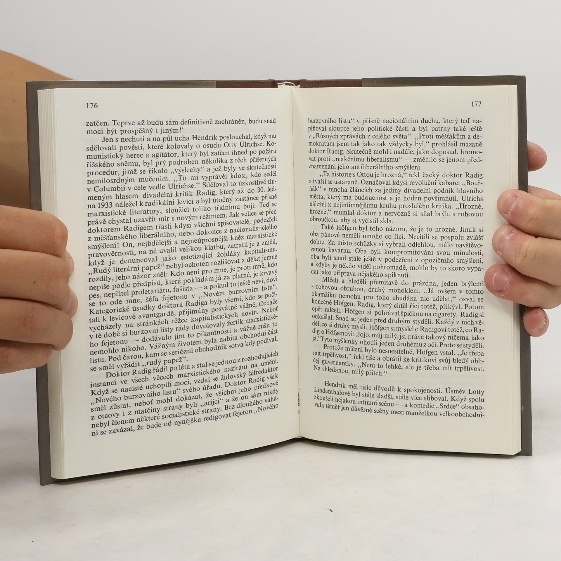 Román jedné kariéry líčí životní příběh talentovaného umělce, který se vetřel do přízně nových mocipánů Třetí říše, hnán chorobným slavomamem, bezohlednou ctižádostí a neukojenou ješitností. Dramatický děj je zasazen do přitažlivého a barvitého prostředí divadla. 01-059-84