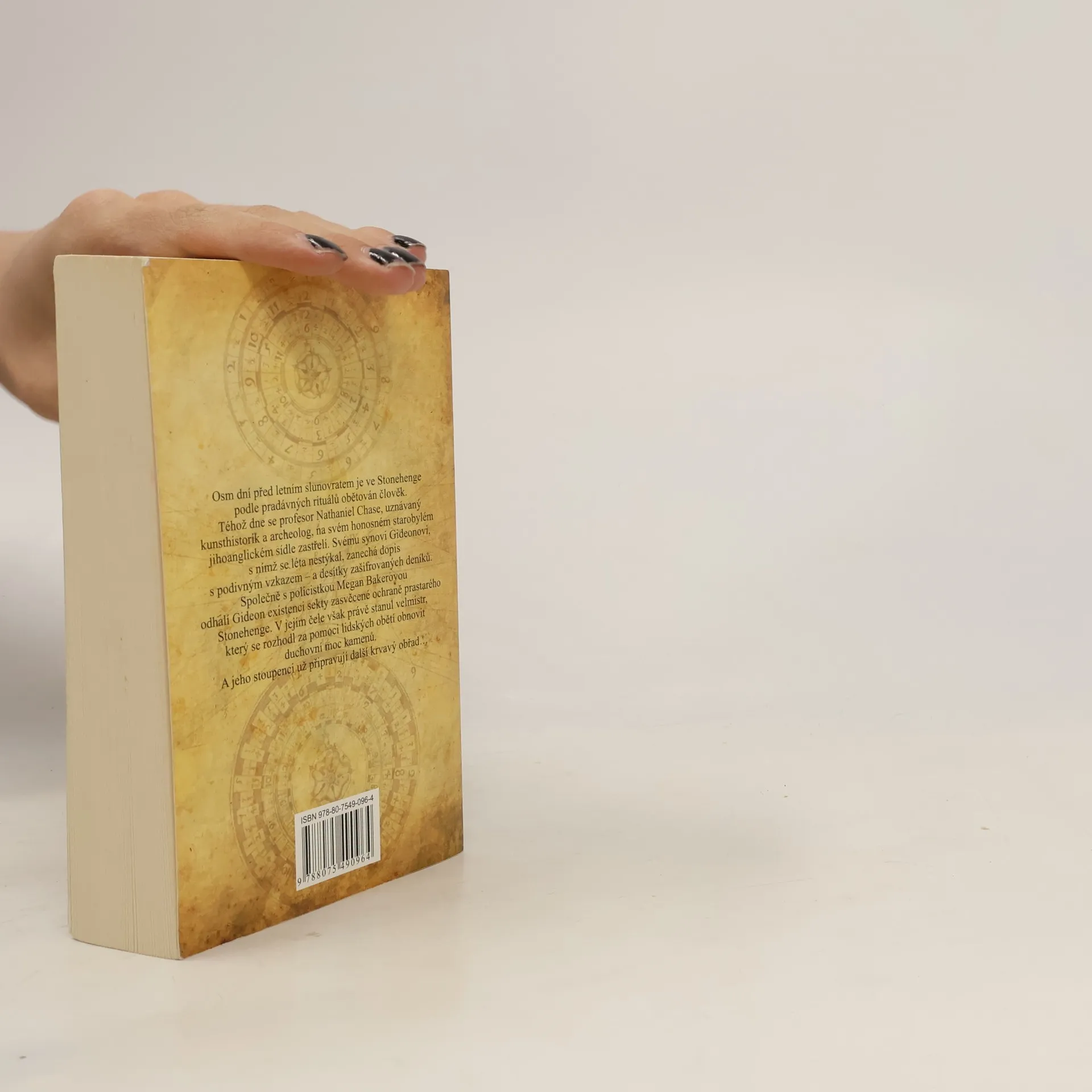Osm dní před letním slunovratem je ve Stonehenge podle pradávných rituálů obětován člověk. Téhož dne se profesor Nathaniel Chase, uznávaný kunsthistorik a archeolog, na svém honosném starobylém jihoanglickém sídle, zastřelí. Svému synovi Gideonovi, s nímž se léta nestýkal, zanechá dopis s podivným vzkazem – a desítky zašifrovaných deníků. Společně s policistkou Megan Bakerovou odhalí Gideon existenci sekty zasvěcené ochraně prastarého Stonehenge. V jejím čele však právě stanul velmistr, který se rozhodl za pomoci lidských obětí obnovit duchovní moc kamenů. A jeho stoupenci už připravují další krvavý obřad… Napínavý thriller, v němž nechybějí záhadné kódy, mystické symboly a množství detailů z historie dodnes tajemstvím opředeného Stonehenge, je zdařilým debutem vycházející hvězdy žánru mysteriózních dobrodružných příběhů