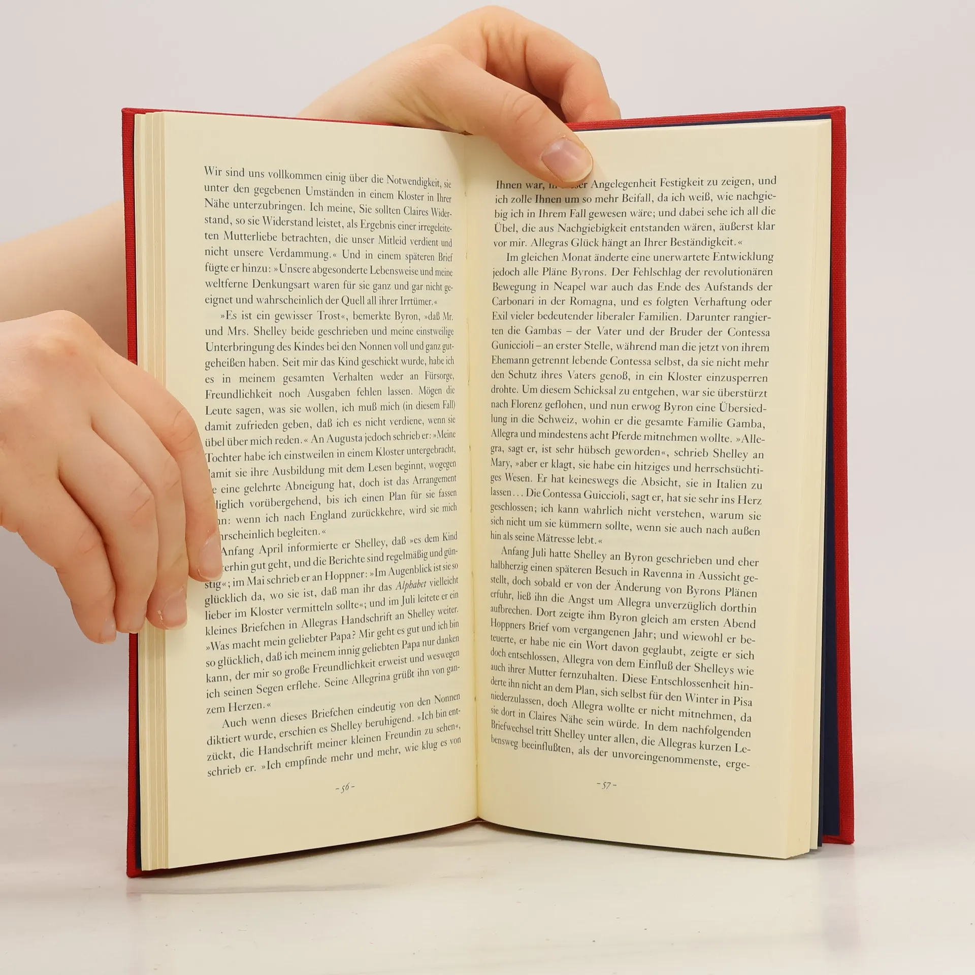 Allegra, die uneheliche Tochter Lord Byrons und Claire Clairmonts, Schwägerin des Dichters Shelley, wurde nur 5 Jahre alt (1817-1822). Ihre kurze Lebensgeschichte ist nicht nur eine ergreifende menschliche Tragödie, sie gewährt auch einen Blick äin ein bizarres kulturgeschichtliches Séparée des 19. Jh., ist auch eine Reise durch die psychologischen Kalamitäten des empfindsamen Zeitaltersä.