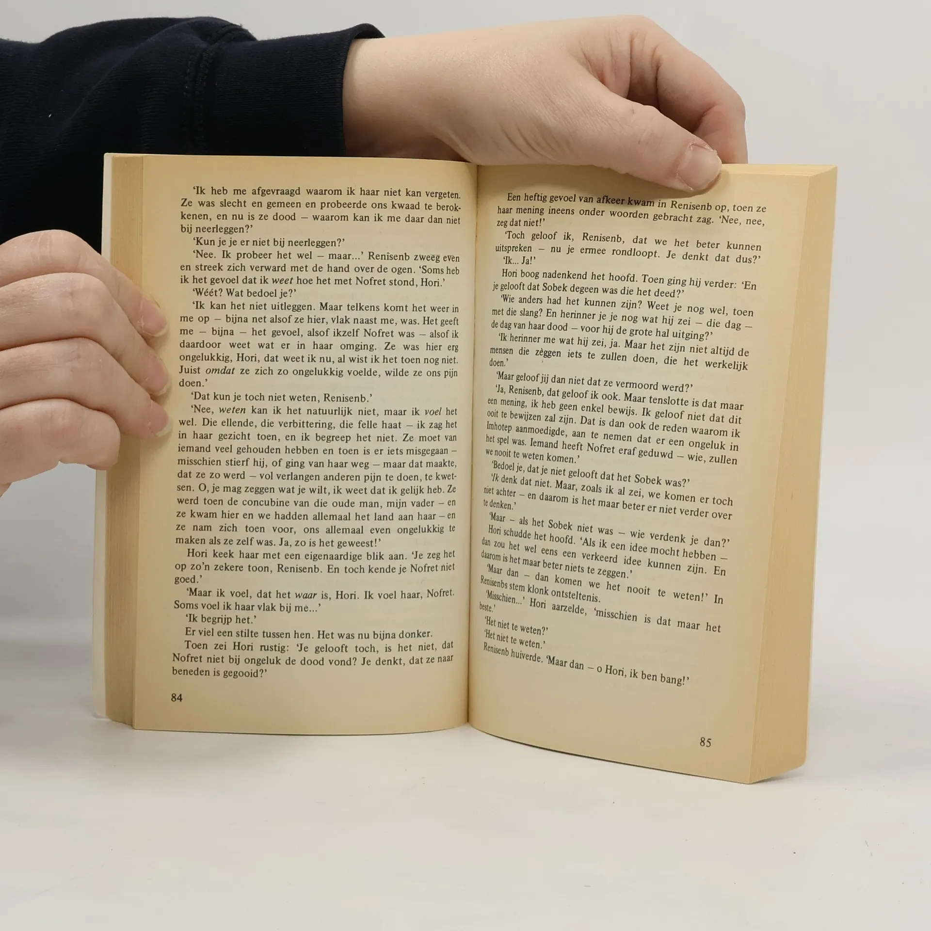 Een uniek detectiveverhaal, dat bijna vierduizend jaar geleden speelt, in het oude Egypte. In het gezin van Imhotep de Dodenpriester doet de mooie Nofret haar intrede. Imhotep zelf is blij met zijn jonge bijvrouw, maar voor zijn familieleden is zij een bedreiging. Haar komst leidt tot jaloezie, ruzie, haat en... moord.