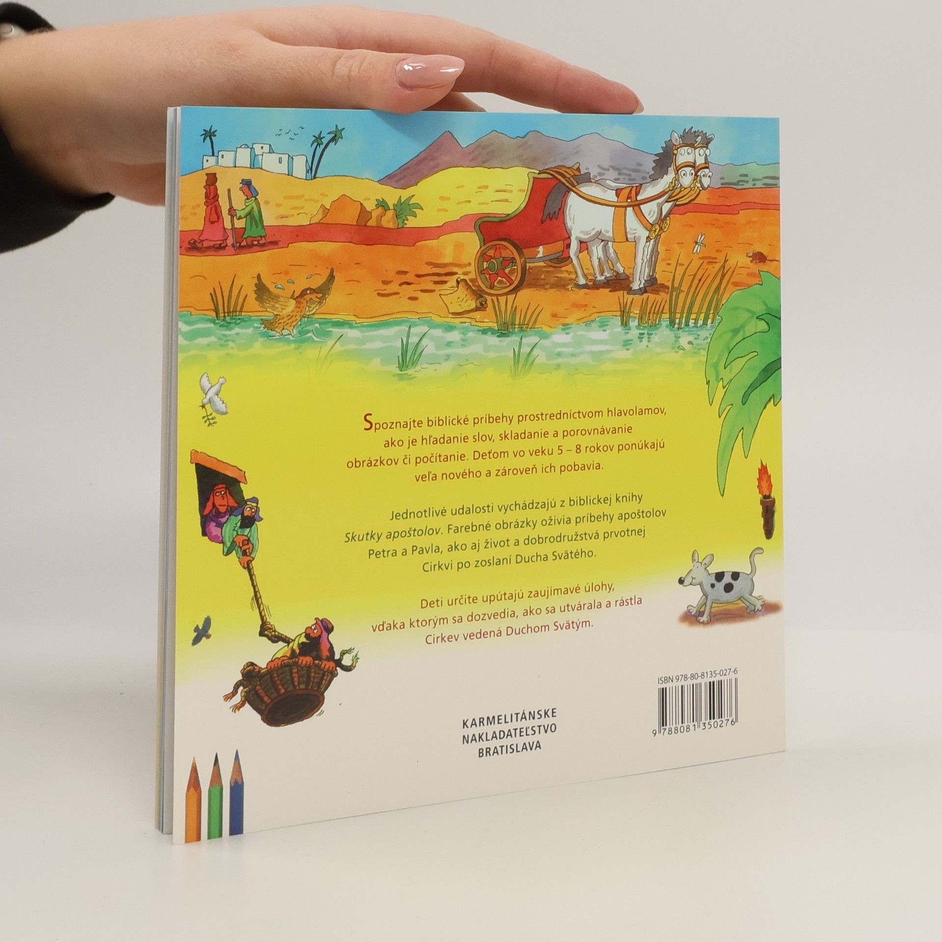 Plnofarbený interaktívny zošit pozýva detských čitateľov vo veku od 5 do 9 rokov spoznávať novozákonný príbeh opísaný v Skutkoch apoštolov. Deti v nej spoznávajú postvy svätých Petra, Pavla, Filipa, vojaka Kornélia a udalosti, ktoré sprevádzali ich účinkovanie. Okrem krátkych textov sprevádzajú knihu rôzne osemsmerovky, doplňovačky a pútavé ilustrácie. Deti dokážu s knihou pracovať samy, na poslednej strane nájdu správne riešenia úloh.