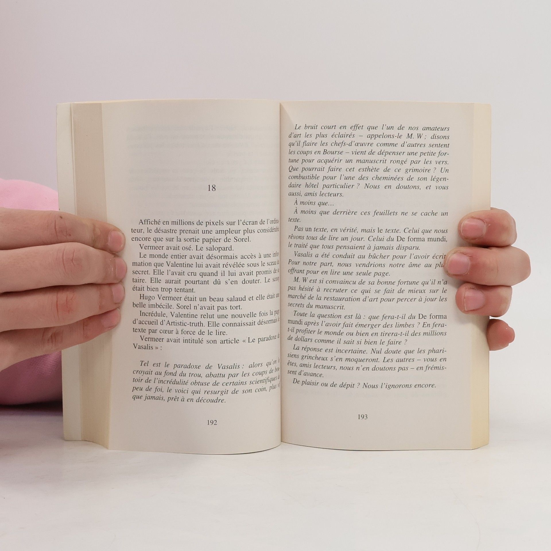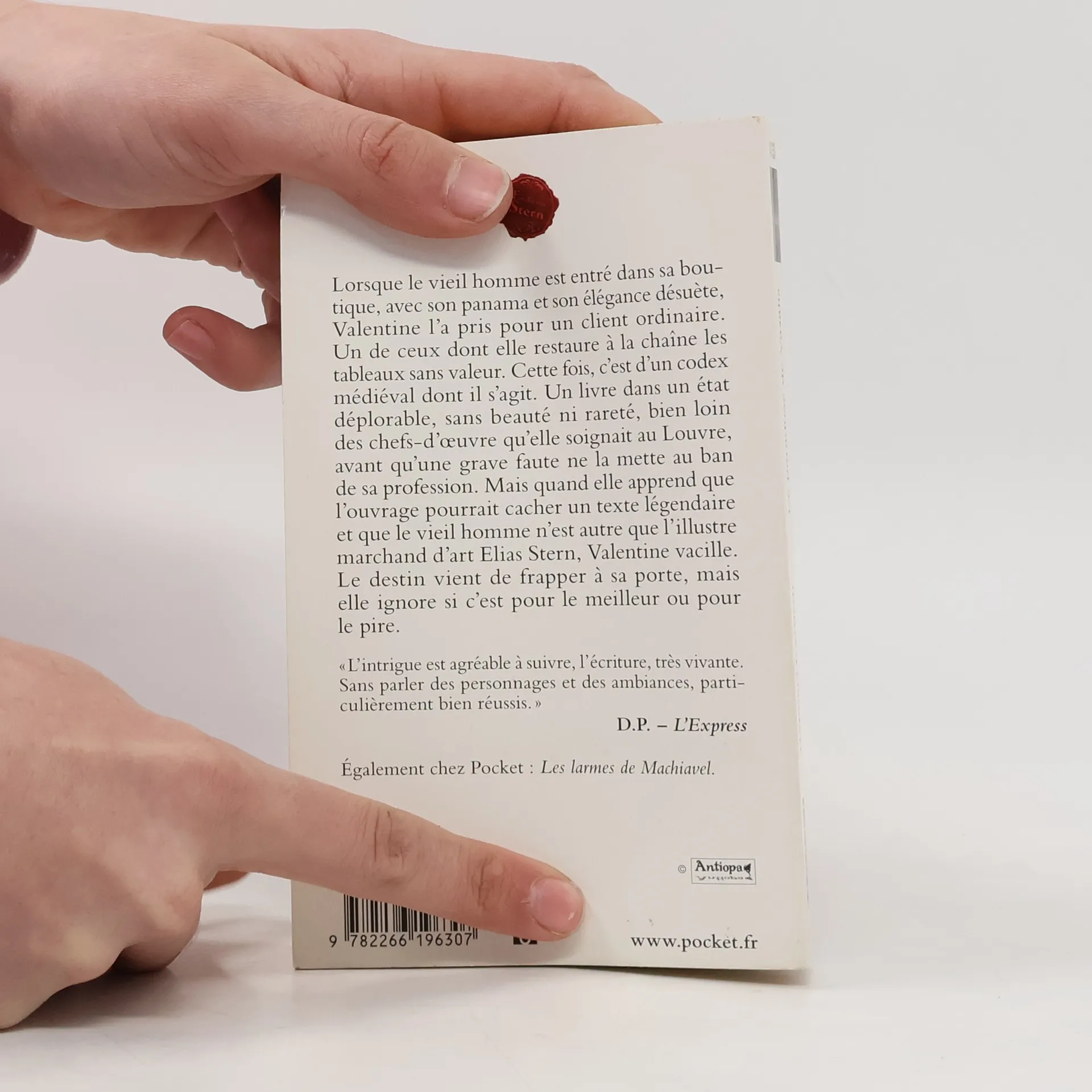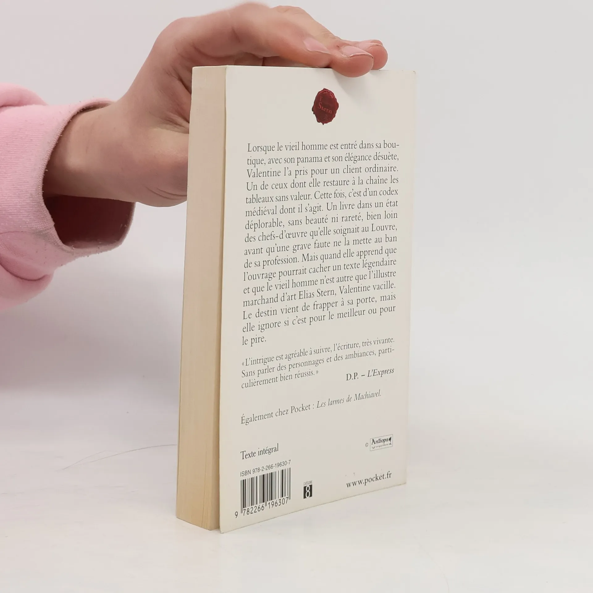 Lorsque le vieil homme est entré dans sa boutique, avec son panama et son élégance désuète, Valentine l'a pris pour un client ordinaire. Un de ceux dont elle restaure à la chaîne les tableaux sans valeur. Cette fois, c'est d'un codex médiéval dont il s'agit. Un livre dans un état déplorable, sans beauté ni rareté, bien loin des chefs-d'oeuvre qu'elle soignait au Louvre, avant qu'une grave faute ne la mette au ban de sa profession. Mais quand elle apprend que l'ouvrage pourrait cacher un texte légendaire et que le vieil homme n'est autre que l'illustre marchand d'art Elias Stern, Valentine vacille. Le destin vient de frapper à sa porte, mais elle ignore si c'est pour le meilleur ou pour le pire.