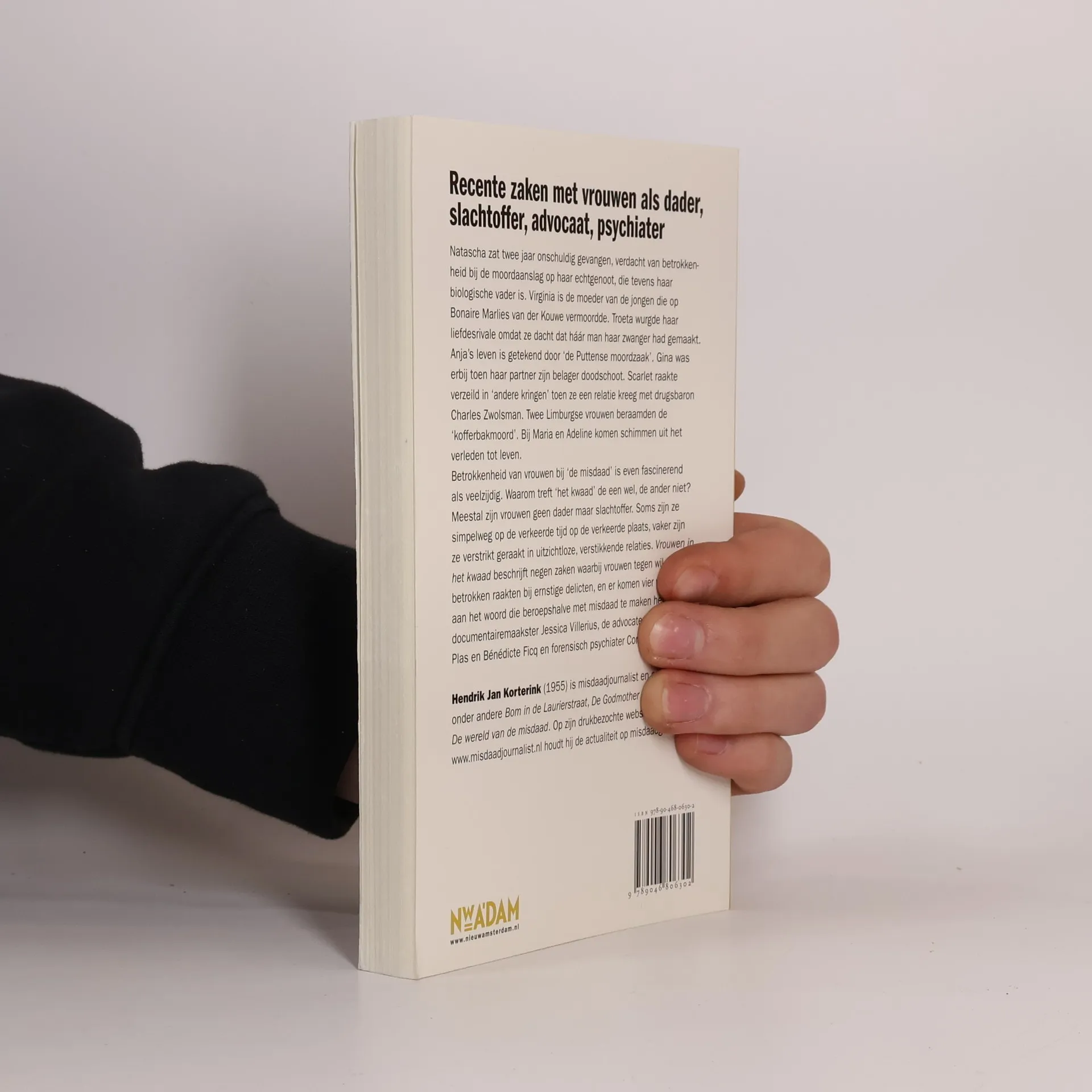 Vrouwen in het kwaadVijftien onthutsende moordzakenNatascha zit twee jaar onschuldig gevangen, verdacht van betrokkenheid bij de moordaanslag op haar echtgenoot, die tevens haar biologische vader is. Jos wordt meegezogen in de pathologische leugens van haar vriend en verbijt zich in de bajes. Manuela vriendin van een viervoudig moordenaar is de femme fatale bij een bloedige cafmoord. Allegonda sterft in actie, als eerste vrouwelijk lid van een arrestatieteam. Marlies heeft de pech dat een net vrijgelaten zedendelinquent het op haar heeft gemunt. Troeta doodt haar liefdesrivale omdat ze denkt dat hr man haar zwanger heeft gemaakt.Betrokkenheid van vrouwen bij 'de misdaad' is even fascinerend als veelzijdig. Waarom treft 'het kwaad' de een wel, de ander niet? Meestal zijn vrouwen geen dader maar slachtoffer. Soms zijn ze simpelweg op de verkeerde tijd op de verkeerde plaats, vaker zijn ze verstrikt geraakt in uitzichtloze, verstikkende relaties. Vrouwen in het kwaad beschrijft zo'n vijftien recente zaken. Forensisch psychiater Corine de Ruiter en advocate Bndicte Ficq laten er beroepsmatig hun licht over schijnen.Recente zaken met vrouwen als dader, slachtoffer, advocaat, psychiaterHendrik Jan Korterink (1955) is misdaadjournalist en schrijver van o.a. Bom in de Laurierstraat, De Godmother in Panama en De wereld van de misdaad. Op zijn drukbezochte website misdaadjournalist.nl houdt hij de actualiteit op misdaadgebied bij.