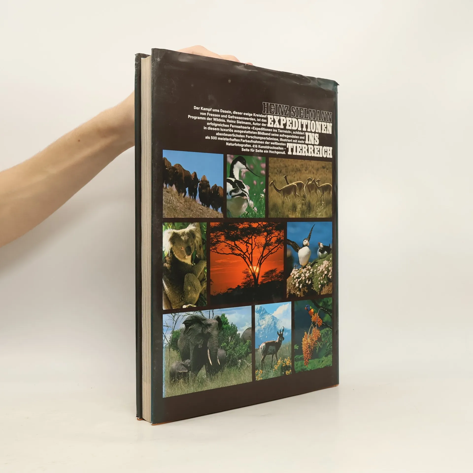 Von der eisigen Bergwildnis Alaskas bis in den feuchtheißen Tropendschungel Borneos, von der gelben Hölle Nordafrikas bis in die endlosen Weiten der skandinavischen Tundra - märchenhafter und prachtvoller ist die Welt der Tiere noch nie gezeigt worden als in diesem Buch. Der Kampf ums Dasein, dieser ewige Kreislauf von Fressen und Gefressenwerden, ist das Programm der Wildnis. Heinz Sielmann, Autor der erfolgreichen Fernsehserie "Expeditionen ins Tierreich", schildert in diesem luxuriös ausgestatteten Bildband seine aufregendsten und abenteurlichsten Forschungserlebnisse, illustriert mit mehr als 500 meisterhaften Farbaufnahmen der weltbesten Naturfotografen. 416 Kunstdruckseiten - Seite für Seite ein Hochgenuß.