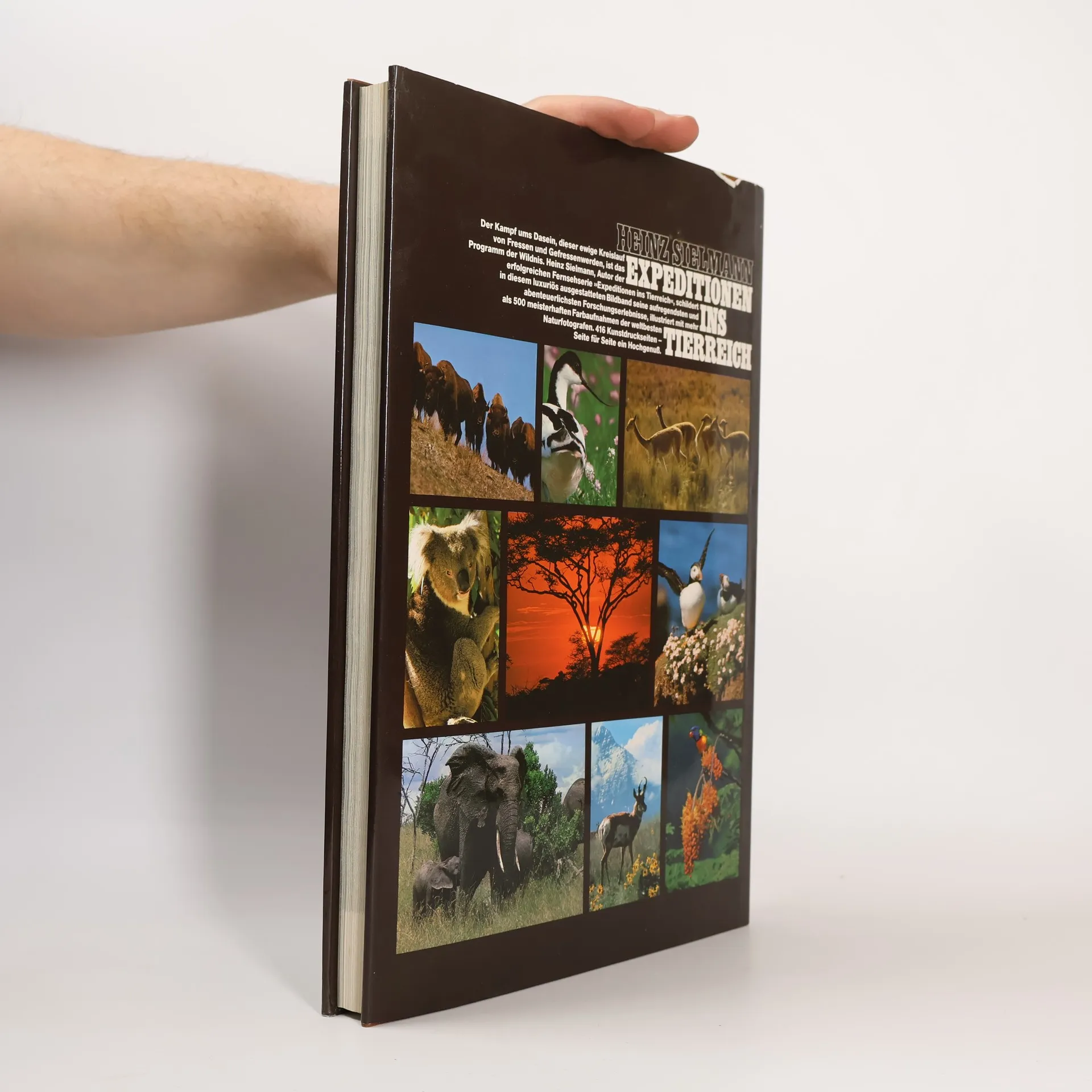 Von der eisigen Bergwildnis Alaskas bis in den feuchtheißen Tropendschungel Borneos, von der gelben Hölle Nordafrikas bis in die endlosen Weiten der skandinavischen Tundra - märchenhafter und prachtvoller ist die Welt der Tiere noch nie gezeigt worden als in diesem Buch. Der Kampf ums Dasein, dieser ewige Kreislauf von Fressen und Gefressenwerden, ist das Programm der Wildnis. Heinz Sielmann, Autor der erfolgreichen Fernsehserie "Expeditionen ins Tierreich", schildert in diesem luxuriös ausgestatteten Bildband seine aufregendsten und abenteurlichsten Forschungserlebnisse, illustriert mit mehr als 500 meisterhaften Farbaufnahmen der weltbesten Naturfotografen. 416 Kunstdruckseiten - Seite für Seite ein Hochgenuß.