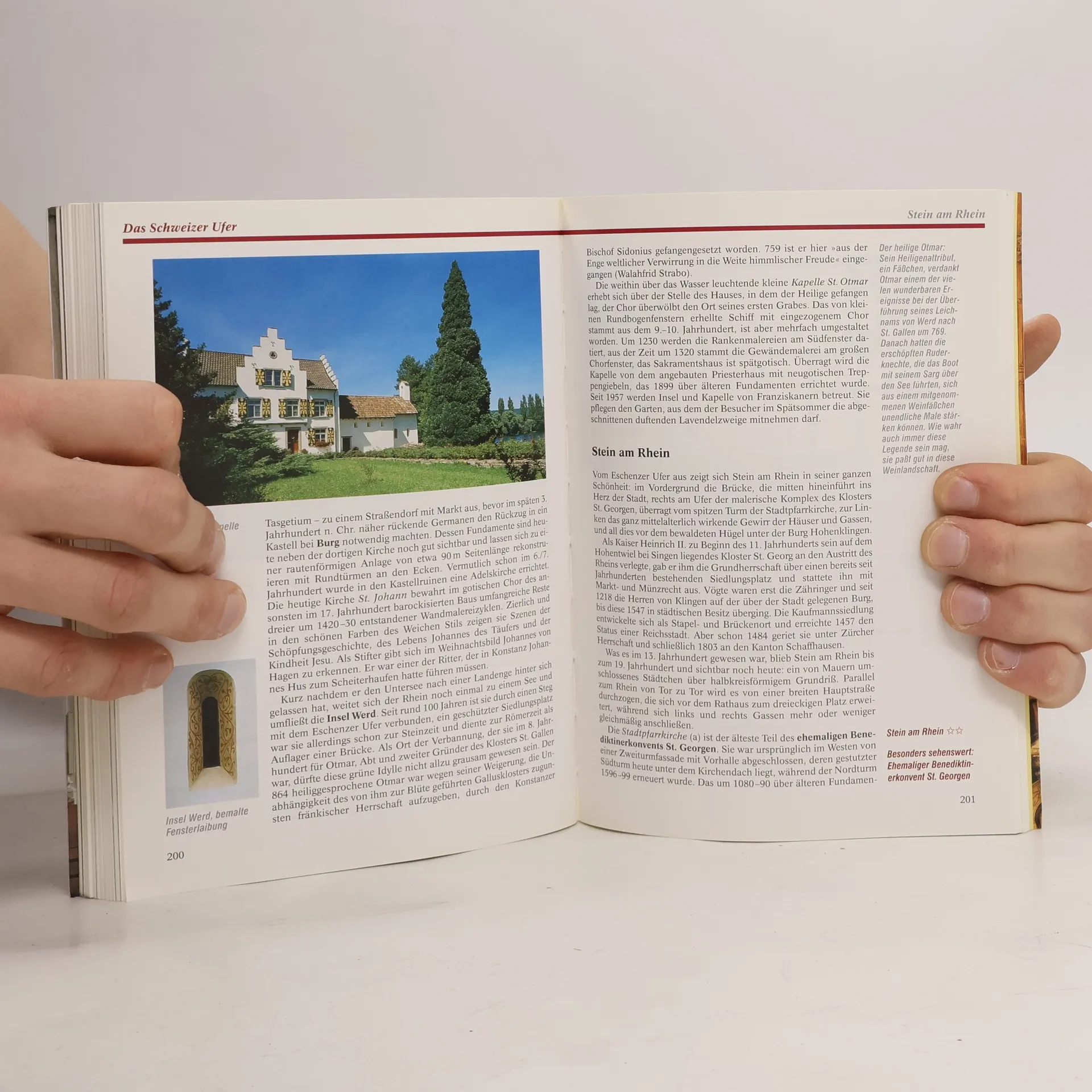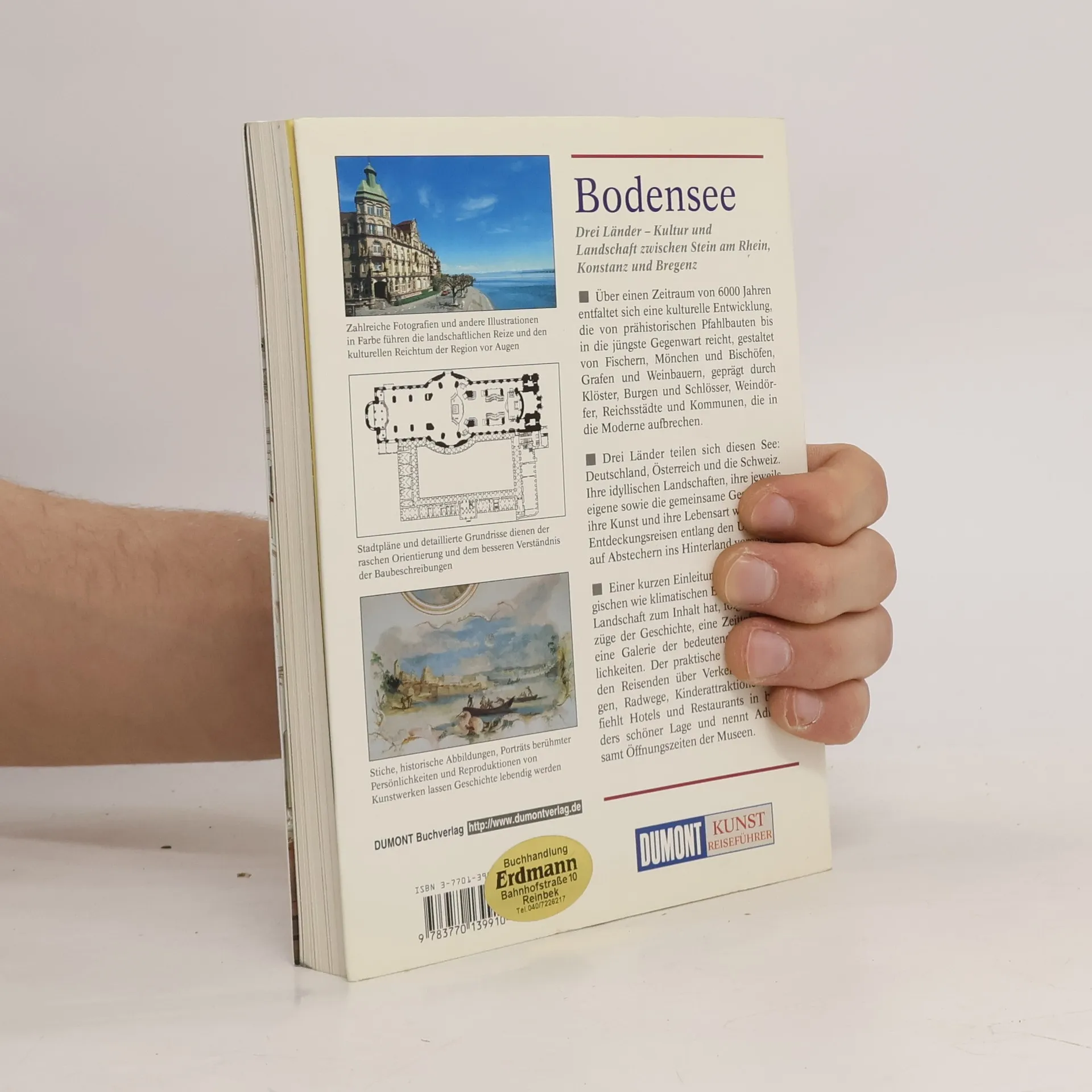 Das zweitgrößte Gewässer Deutschlands ist traditionell ein beliebtes Feriengebiet und eine alte Kulturlandschaft. Entspannung und Erholung lassen sich hier bestens verbinden mit Besichtigungen und Kulturgenuss. Die Palette der hochrangigen Sehenswürdigkeiten reicht von den stein- bzw. bronzezeitlichen Pfahlbauten bei Unteruhldingen über die mittelalterlichen Klöster auf der Insel Reichenau bis zu Barockkirchen wie beispielsweise der in Birnau bei Überlingen. Eva Moser beginnt mit ihrer Annäherung an das "Schwäbische Meer" im Westen mit der Universitätsstadt Konstanz, der schönen, etwas im touristischen Abseits gelegenen Halbinsel Höri und den Inseln Reichenau und Mainau. Von dort wird das deutsche Bodenseeufer weiter erkundet: von Überlingen geht es über Meersburg und Friedrichshafen bis nach Lindau, Ausflüge ins Hinterland - so zum Beispiel zur berühmten Klosterkirche in Weingarten - inbegriffen. Das Schweizer Ufer wird ebenfalls von Westen nach Osten beschrieben: Kreuzlingen, Stein am Rhein, Rorschach und St. Gallen als markantes Ausflugsziel. Am Schluss steht das österreichische Ufer mit Bregenz im Mittelpunkt und Ausflügen nach Dornbirn und Hohenems. Klein aber fein und bisweilen mit sehr genauen Angaben zu Spezialitäten und Vorzügen ist die Liste der Hotel- und Restaurantempfehlungen im hinteren Teil des Buches, der man anmerkt, dass sich die Autorin Eva Moser auch kulinarisch in der Region beheimatet fühlt.