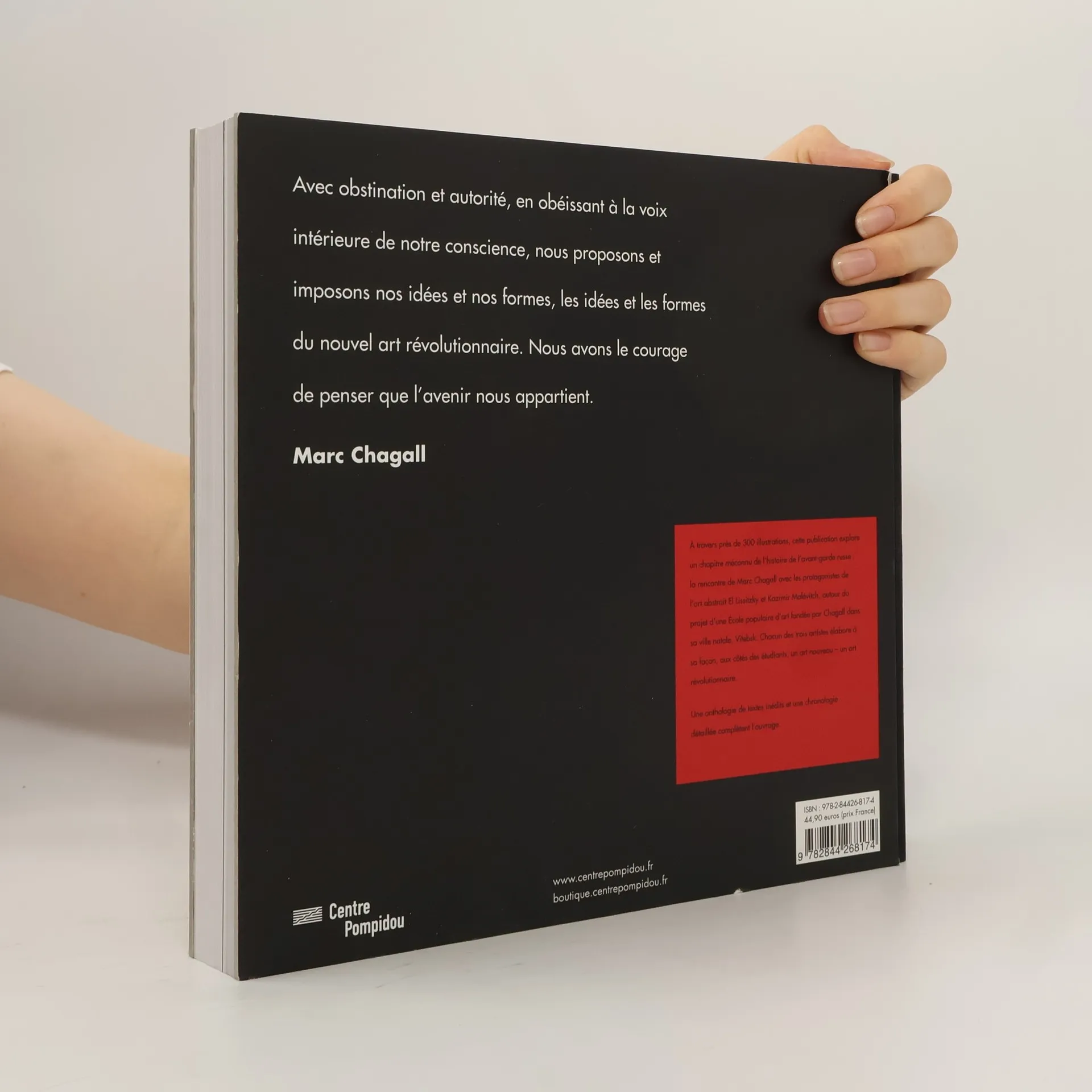Avec obstination et autorité, en obéissant à la voix intérieure de notre conscience, nous proposons et imposons nos idées et nos formes, les idées et les formes du nouvel art révolutionnaire. Nous avons le courage de penser que l'avenir nous appartient. Marc Chagall. A travers près de 300 illustrations, cette publication explore un chapitre méconnu de l'histoire de l'avant-garde russe : la rencontre de Marc Chagall avec les protagonistes de l'art abstrait El Lissitzky et Kazimir Malévitch, autour du projet d'une Ecole populaire d'art fondée par Chagall dans sa ville natale, Vitebsk. Chacun des trois artistes élabore à sa façon, aux côtés des étudiants, un art nouveau - un art révolutionnaire. Une anthologie de textes inédits et une chronologie détaillée complètent l'ouvrage.