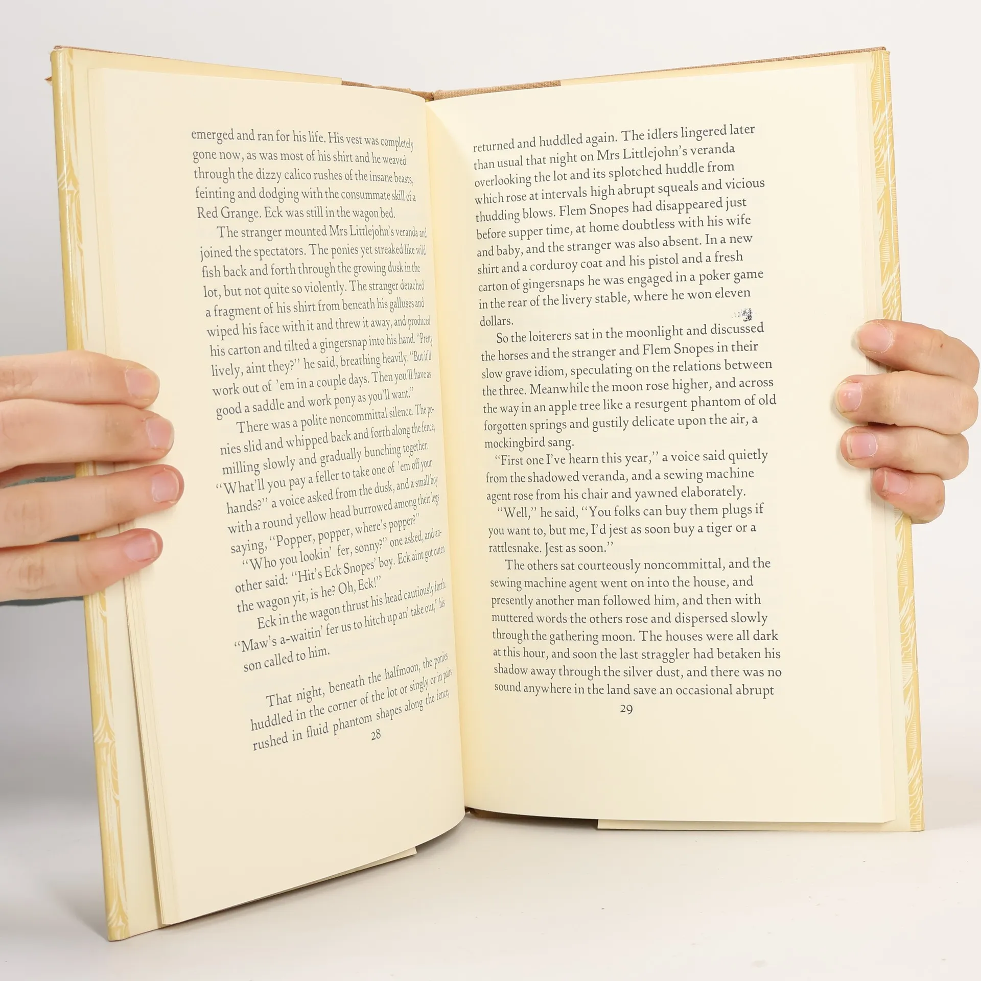 A sale of fiery wild ponies, which manage to escape their corral after they are sold, introduce Flem Snopes, the man behind the sale, to the town of Frenchman's Bend.