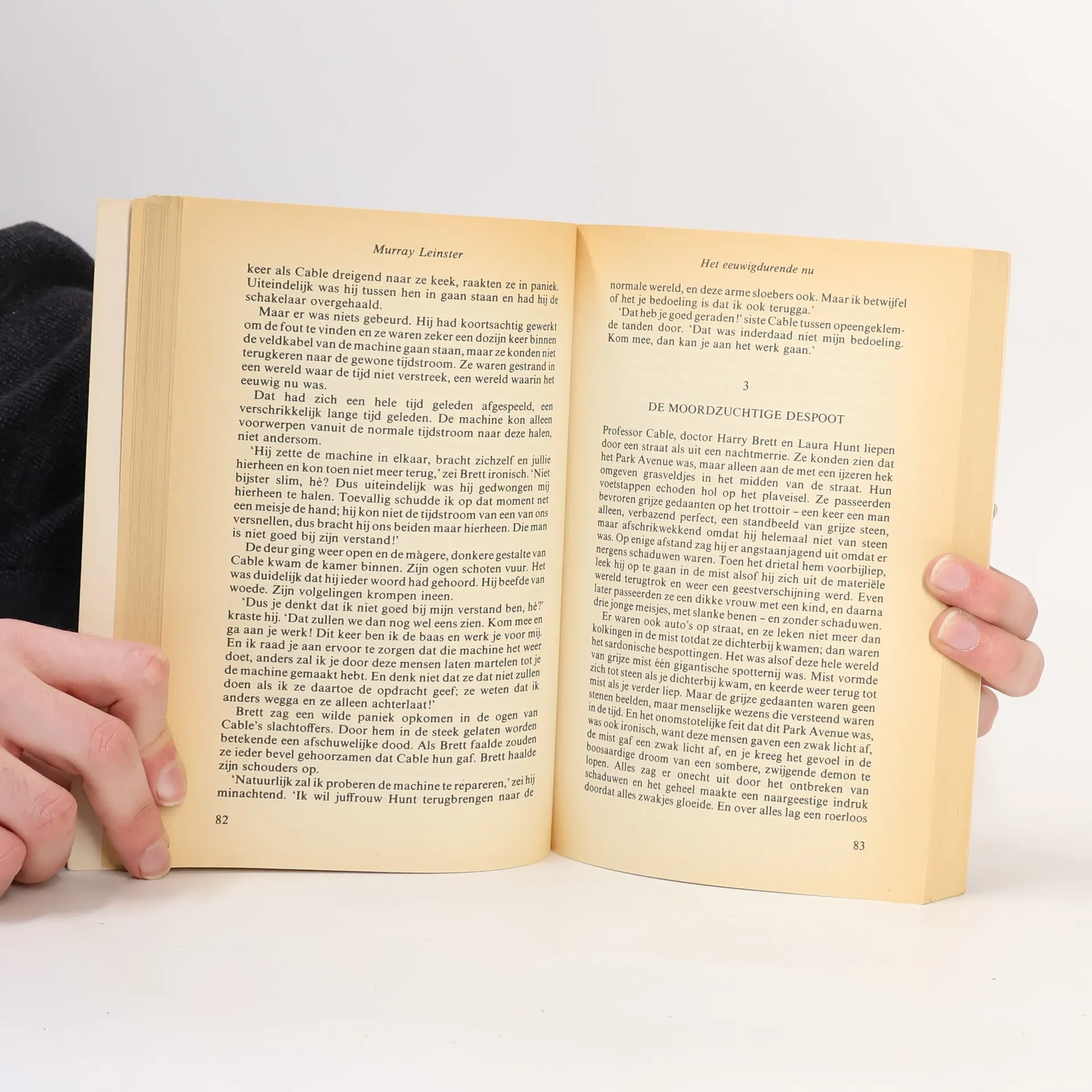 Bevat: ASIMOV, Isaac - HET WAPEN TE VRESELIJK OM TE GEBRUIKEN (Amazing Stories, 1939, vert.door: Jean-A. Schalekamp) STURGEON, Theodore - ABREACTIE (Weird Tales, 1939, vert.door: Pon Ruiter) BRADBURY, Ray - DE FLUIT (Thrilling Wonder Stories, feb. 1943, vert.door: Pon Ruiter) LEINSTER, Murray - HET EEUWIGDURENDE NU (Thrilling Wonder Stories, herfst 1944, vert.door: Pon Ruiter) HEINLEIN, Robert A. - COLUMBUS WAS GEK (Startling Stories, mei 1947, vert.door: Pon Ruiter) CLARKE, Arthur C. - AANGESPOELD (Fantasy, 1947 onder het pseudoniem Charles Willis, vert.door: C.A.G. van den Broek) SHECKLEY, Robert - DE AANVAL (Space Science Fiction, 1953, vert.door: Pon Ruiter) ALDISS, Brian W. - EVENAAR (New Worlds Science Fiction, 1958, als feuilleton, vert.door: Pon Ruiter)