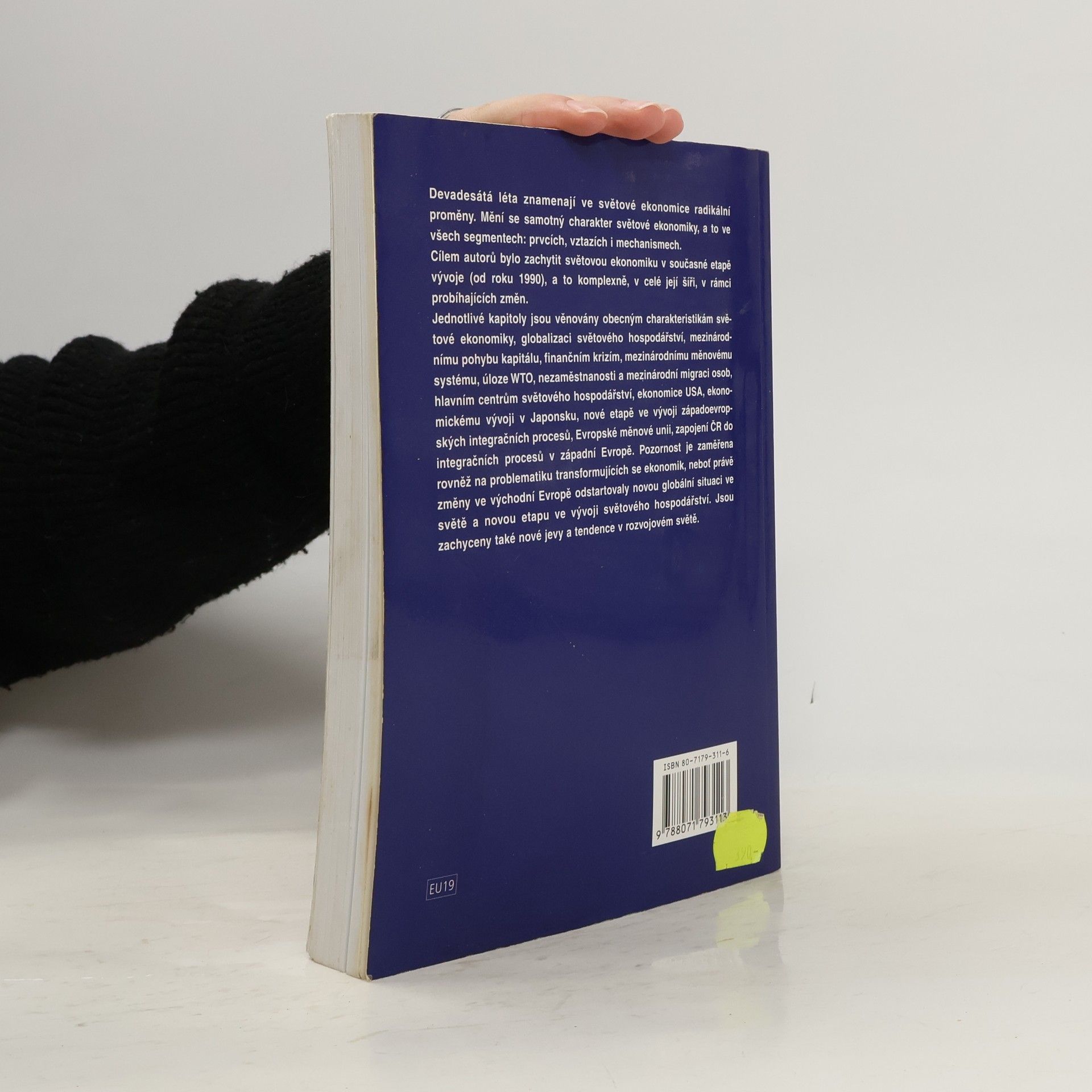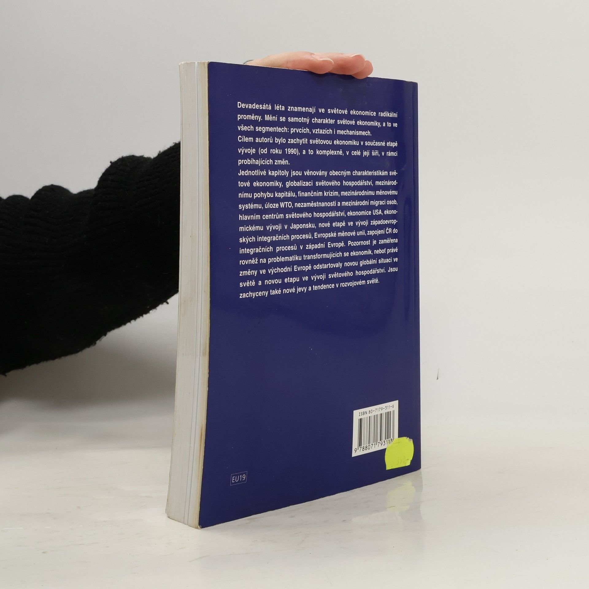 Devadesátá léta znamenala ve světové ekonomice počátek radikálních změn. Světová ekonomika začala měnit svůj charakter, a to ve všech svých segmentech ? prvcích, vztazích i mechanismech. Cílem autorů bylo zachytit světovou ekonomiku v současné etapě jejího vývoje, a to komplexně v celé její šíři, v rámci probíhajících změn, a naznačit směry dalšího vývoje. Úvodní kapitola je věnována podstatě, vzniku a vývoji světové ekonomiky a zachycuje rovněž základní tendence v současné světové ekonomice. Následující kapitoly jsou postupně zaměřeny na globalizaci světové ekonomiky, mezinárodní pohyb kapitálu, finanční krize, mezinárodní měnový systém, úlohu WTO, mezinárodní migraci, hlavní centra světové ekonomiky, ekonomický vývoj USA a Japonska, ekonomický vývoj evropského centra a EMU. Nechybí ani problematika zapojení transformujících se ekonomik do západoevropských integračních procesů. Závěrečné kapitoly pak zahrnují rozvojové země. Nové vydání učebnice je podstatně aktualizováno a rozšířeno, a to o problematiku regionalismu ve světové ekonomice a nově byla do textu zařazena také kapitola zabývající se postavením Indie ve světové ekonomice.