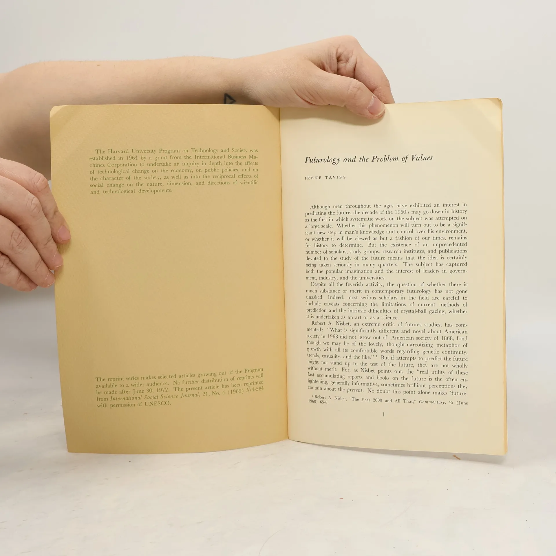 Futurology on the Problem of Values, Irene Taviss