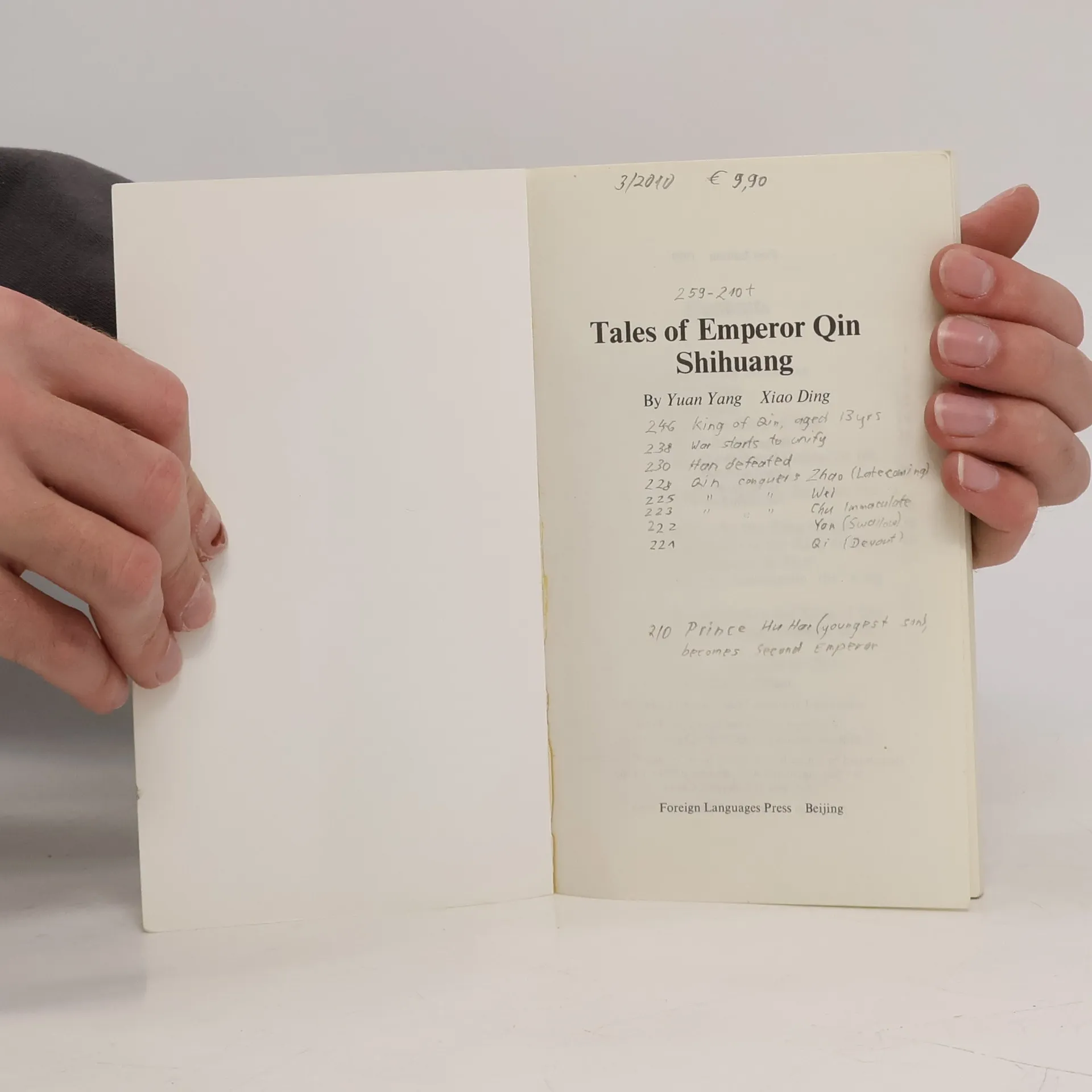 Emperor Qin Shihuang is known to everyone in China. He was born in 259 B.C. and became king of the state of Qin at the age of 13. In 221 B.C. he established the Qin Dynasty, the first centralized and unified regime in the history of China. His merits and demerits have brought him both praise and blame down through the ages. He has been honored as a remarkable emperor and denounced as a tyrant. Some of the stories in this book come from historical records which serve to silhouette the life of Emperor Qin Shihuang, and some are based on popular legends, adding highly colored details about him and reflecting the feelings and hopes of ordinary people. These two sources complement each other for a comprehensive look at Qin Shihuang and his world.