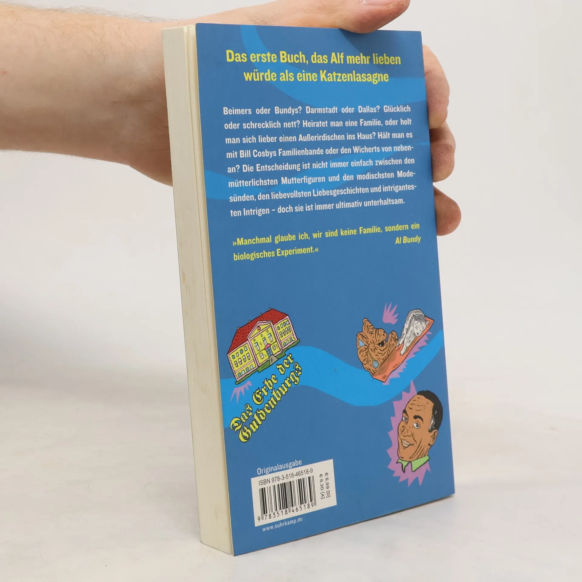 Sie fühlen sich einsam? Heiraten Sie eine Familie. Eine außerirdische Lebensform landet in Ihrem Garten? Nehmen Sie sie auf wie Ihr eigen Fleisch und Blut. Ihr Vater vererbt Ihnen und Ihrem Bruder ein Ölimperium? Ein Mordsspaß! Meistern Sie Pubertäts- und Ehekrisen mit der Lässigkeit eines Al Bundy und entscheiden Sie, ob bei Erbstreitigkeiten die Guldenburgs oder die Ewings die besseren Tipps parat haben. Stricken Sie für Ihren Liebsten zu Weihnachten Bill Cosbys Pullover nach und lernen Sie von Mutter Beimer, wie man ein Dirndl richtig bügelt. Wir liefern Ihnen den ultimativen Ratgeber für alle Lebens- und Familienfragen von der Wiege bis zur Bahre.